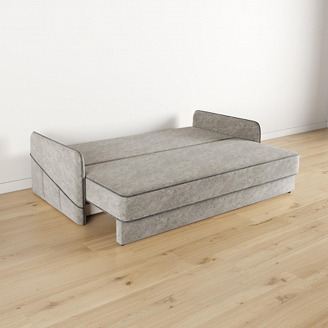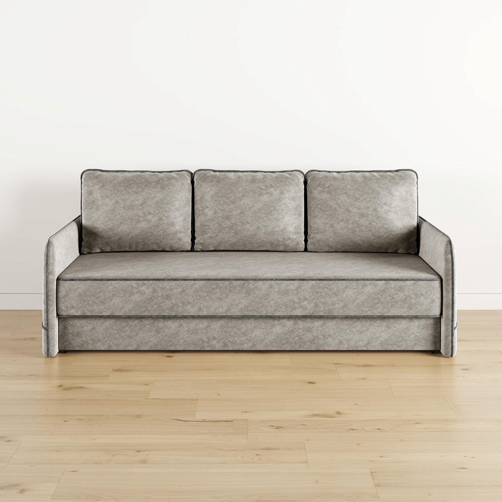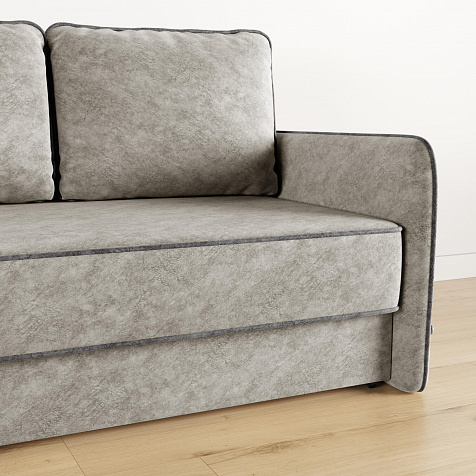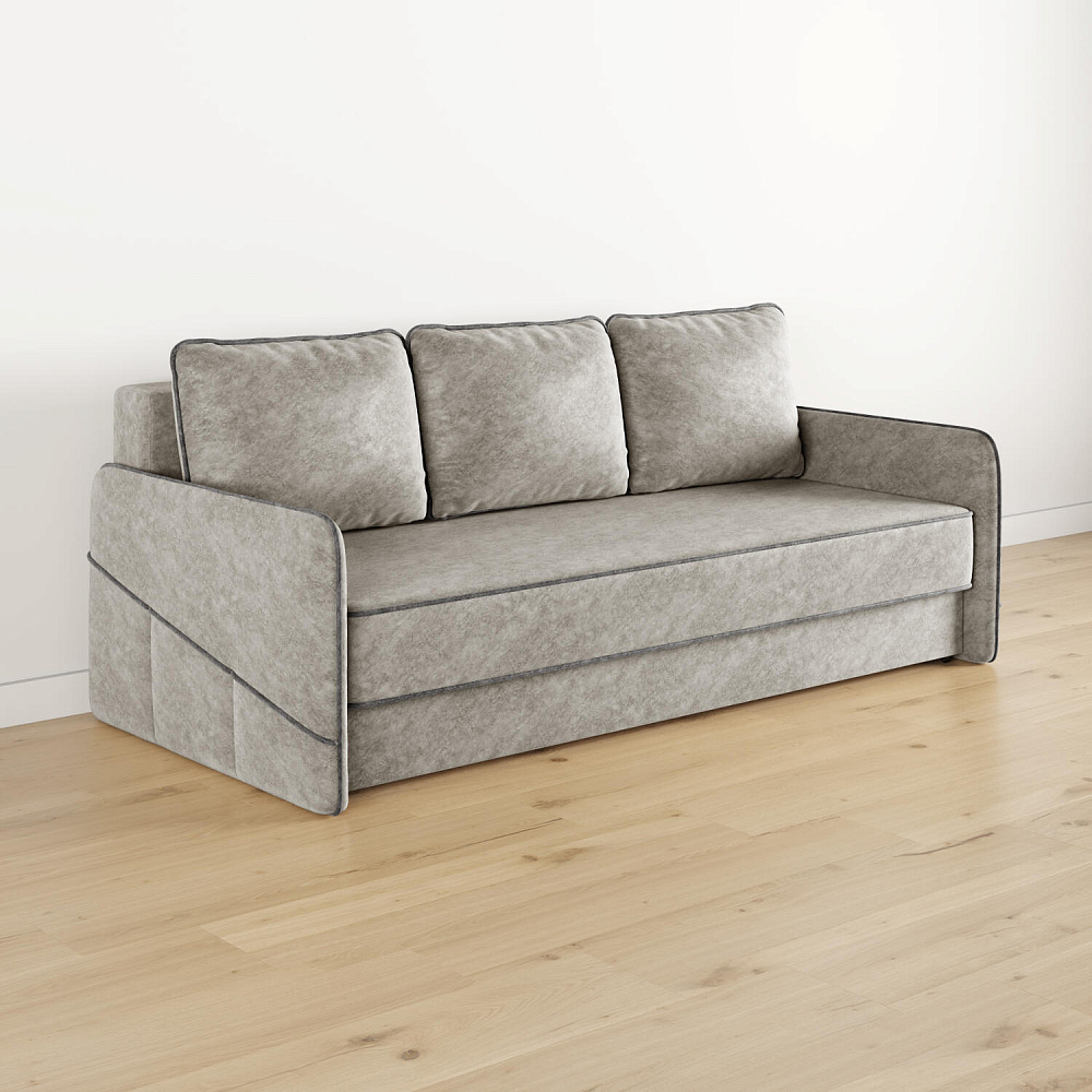 Диван «Симпл» станет стильным акцентом в современной гостиной. Контрастный кант на обивке из мягкого велюра придаёт дизайну дивана завершённый вид и подчёркивает мягкую геометричность. Механизм трансформации «Еврокнижка» в сложенном виде позволяет сэкономить пространство в комнате, в разложенном — обеспечивает комфортное и ровное спальное место. Спинка дивана выполнена в той же обивке, что и основная часть, что даёт возможность использовать диван для зонирования комнаты.