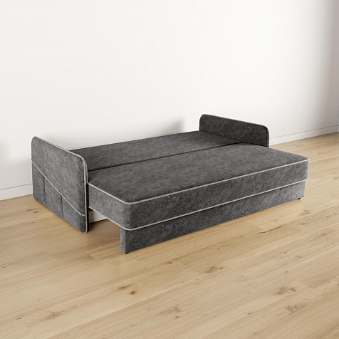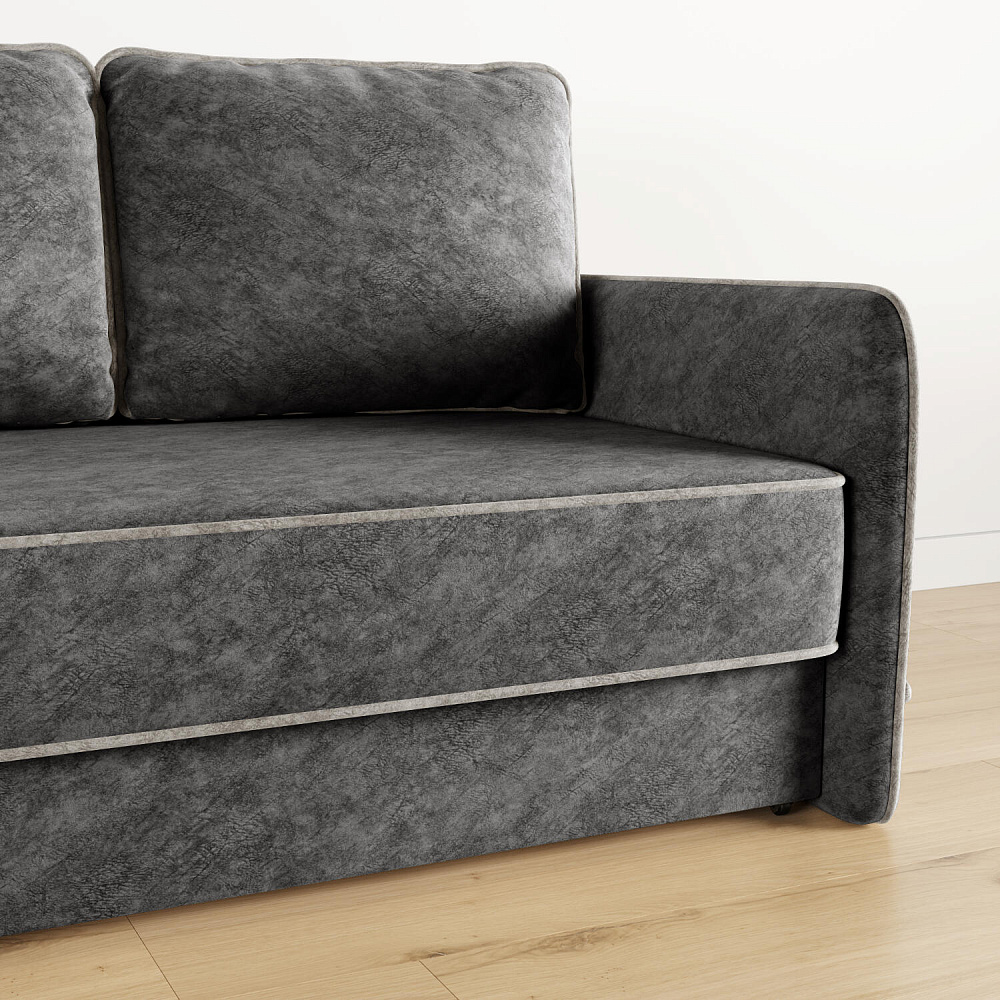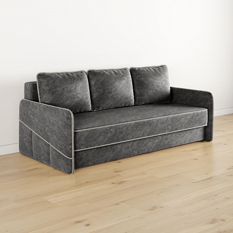 Диван «Симпл» станет стильным акцентом в современной гостиной. Контрастный кант на обивке из мягкого велюра придаёт дизайну дивана завершённый вид и подчёркивает мягкую геометричность. Механизм трансформации «Еврокнижка» в сложенном виде позволяет сэкономить пространство в комнате, в разложенном — обеспечивает комфортное и ровное спальное место. Спинка дивана выполнена в той же обивке, что и основная часть, что даёт возможность использовать диван для зонирования комнаты.