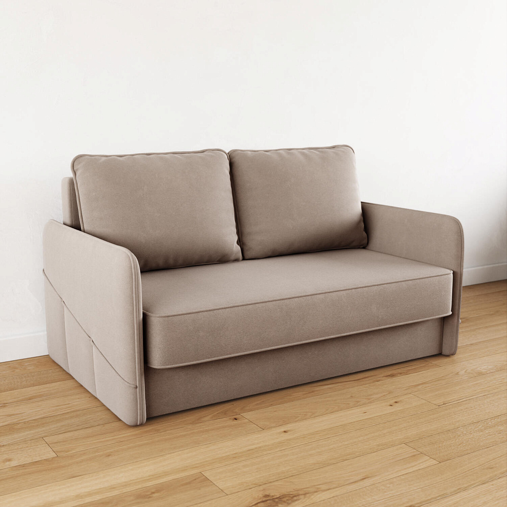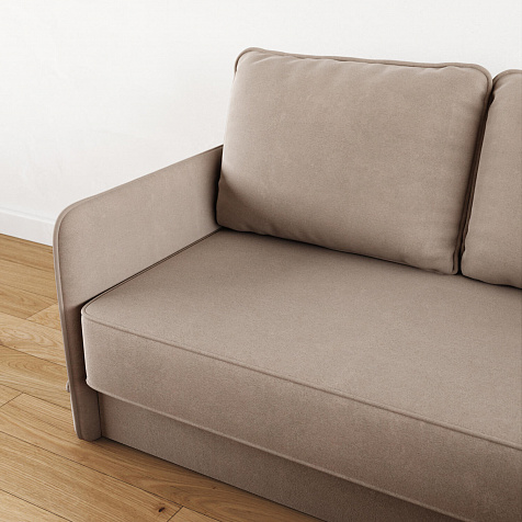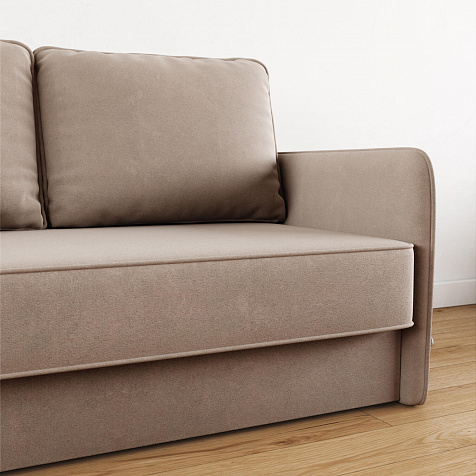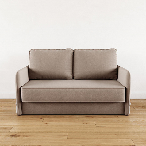 Двухместный диван «Симпл» с узкими подлокотниками станет стильным акцентом в современной гостиной или кухне. Кант на обивке из мягкого велюра придаёт дизайну завершённый вид, подчёркивает скруглённую форму углов. Механизм трансформации обеспечивает комфортное и ровное спальное место. Спинка дивана выполнена в основной обивочной ткани, что даёт возможность использовать диван для зонирования комнаты.