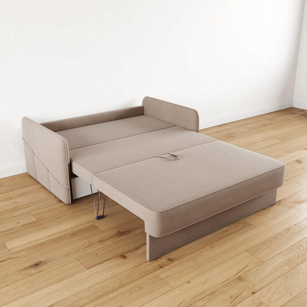 Механизм трансформации «Трёхсекционная Еврокнижка». Для трансформации нужно приподнять и вытянуть вперёд сиденье, затем опустить спинку. Двигается только передняя часть, поэтому отодвигать диван от стены не требуется.