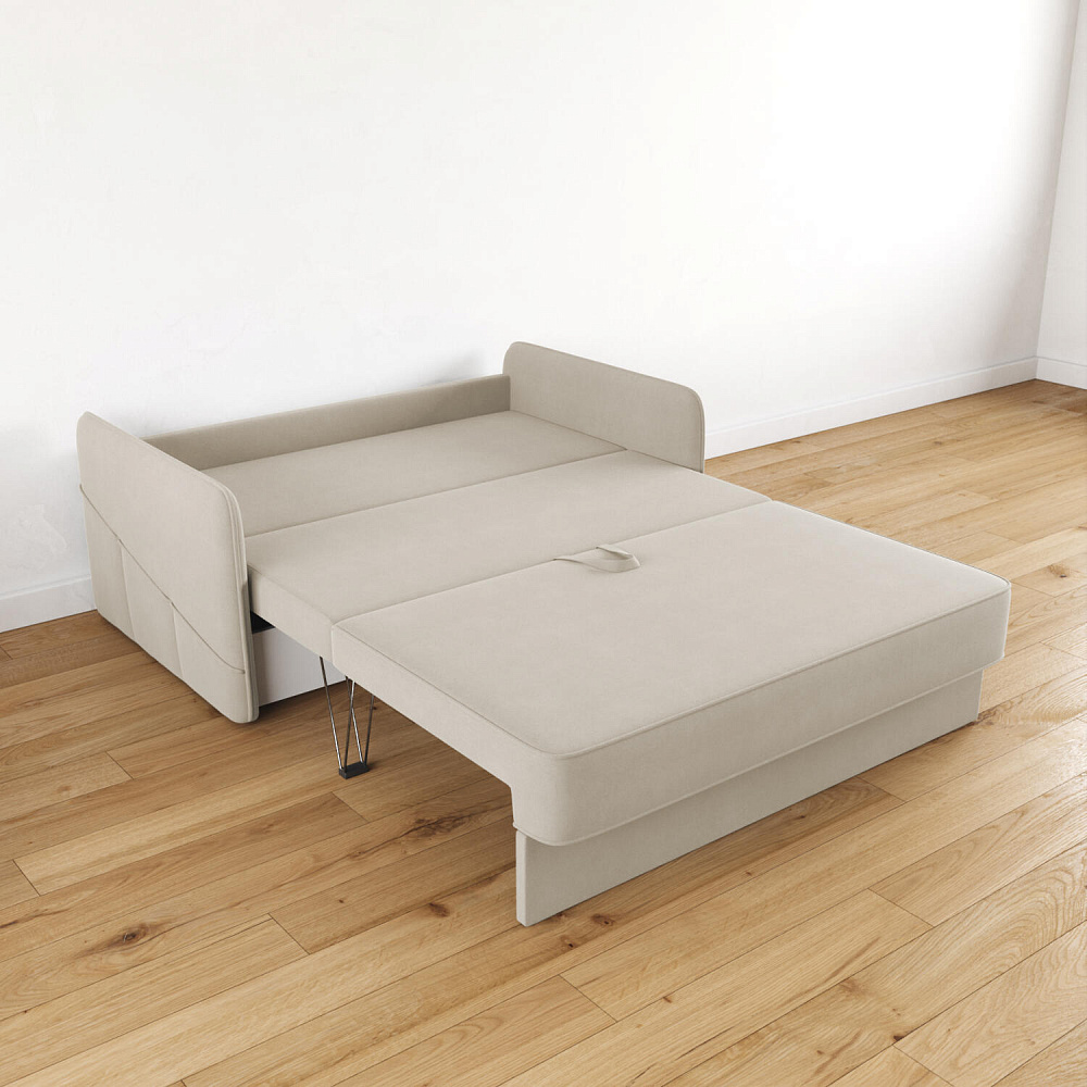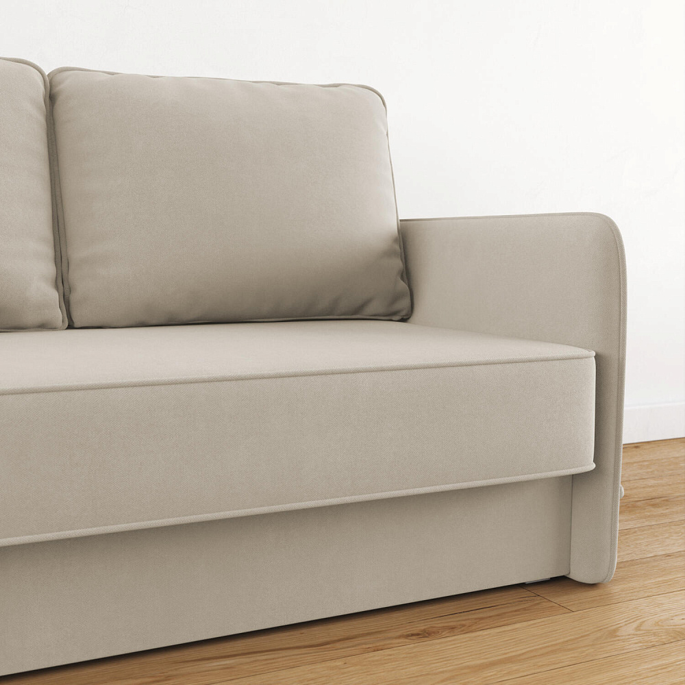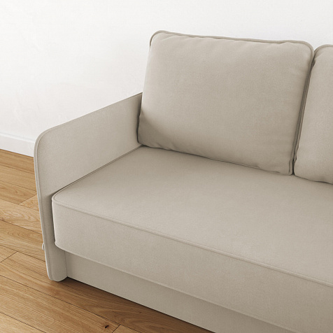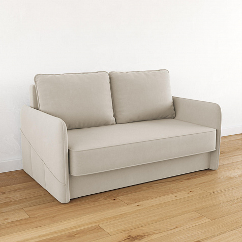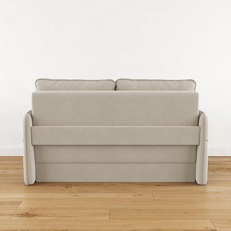 Двухместный диван «Симпл» с узкими подлокотниками станет стильным акцентом в современной гостиной или кухне. Кант на обивке из мягкого велюра придаёт дизайну завершённый вид, подчёркивает скруглённую форму углов. Механизм трансформации обеспечивает комфортное и ровное спальное место. Спинка дивана выполнена в основной обивочной ткани, что даёт возможность использовать диван для зонирования комнаты.
