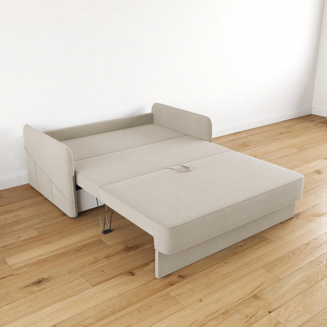 Механизм трансформации «Трёхсекционная Еврокнижка». Для трансформации нужно приподнять и вытянуть вперёд сиденье, затем опустить спинку. Двигается только передняя часть, поэтому отодвигать диван от стены не требуется.
