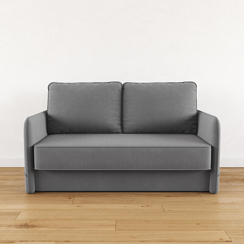 Двухместный диван «Симпл» с узкими подлокотниками станет стильным акцентом в современной гостиной или кухне. Кант на обивке из мягкого велюра придаёт дизайну завершённый вид, подчёркивает скруглённую форму углов. Механизм трансформации обеспечивает комфортное и ровное спальное место. Спинка дивана выполнена в основной обивочной ткани, что даёт возможность использовать диван для зонирования комнаты.