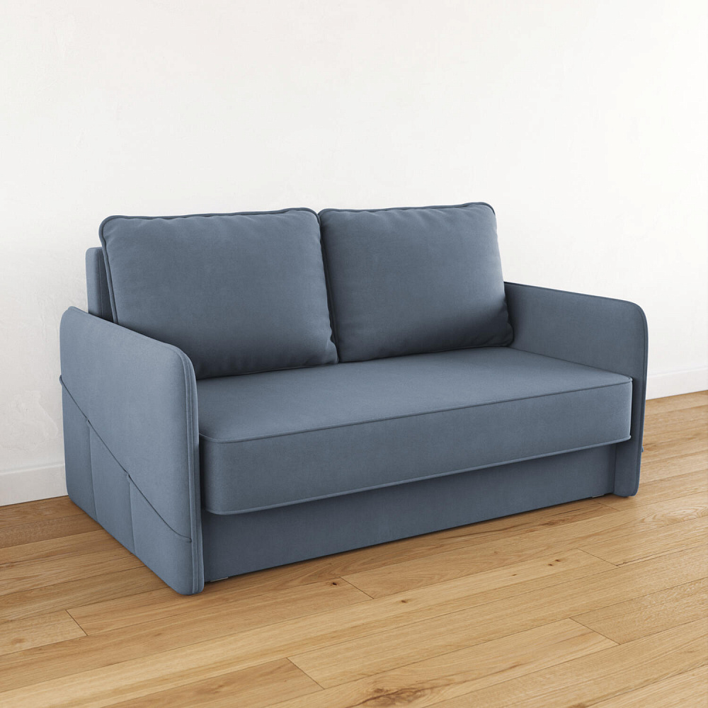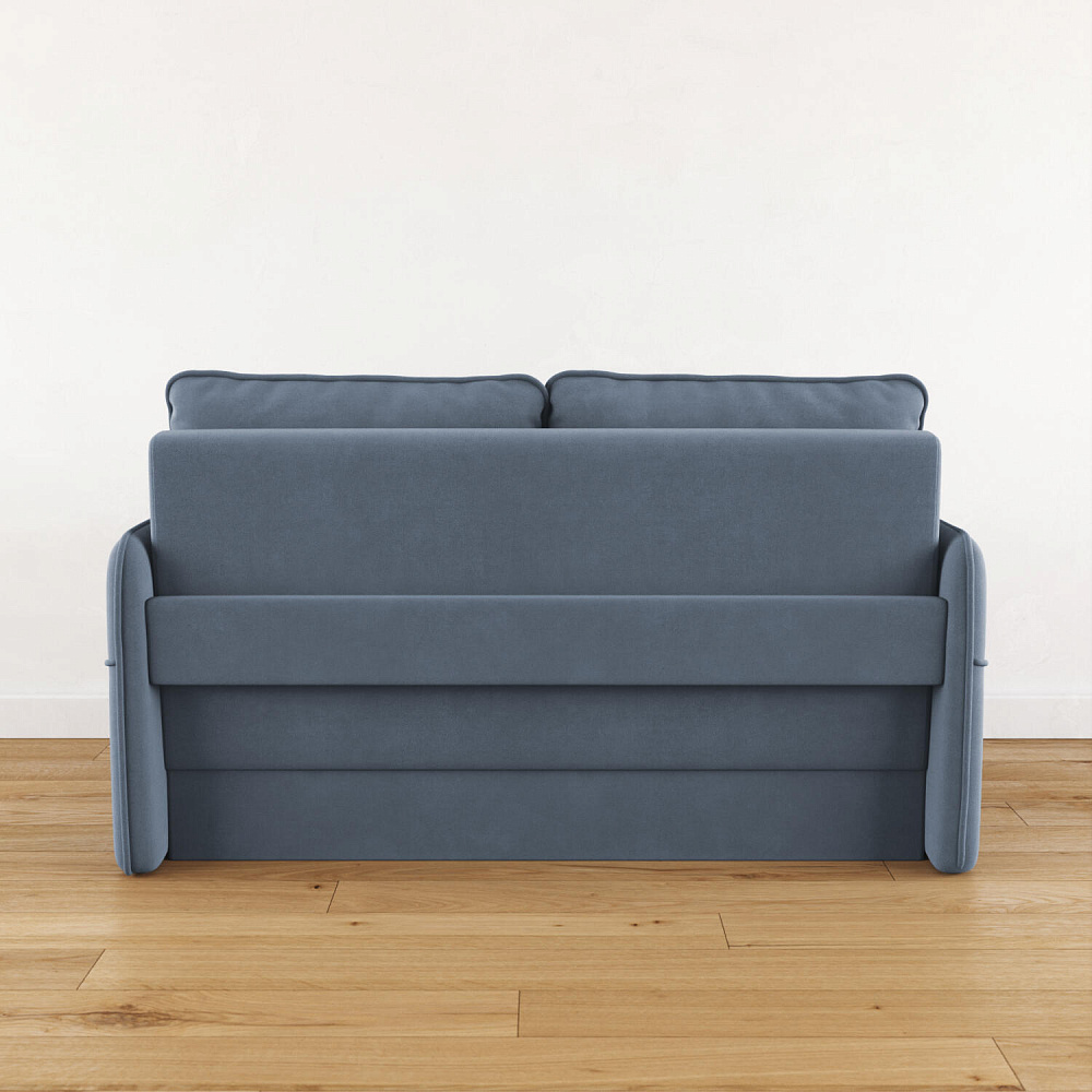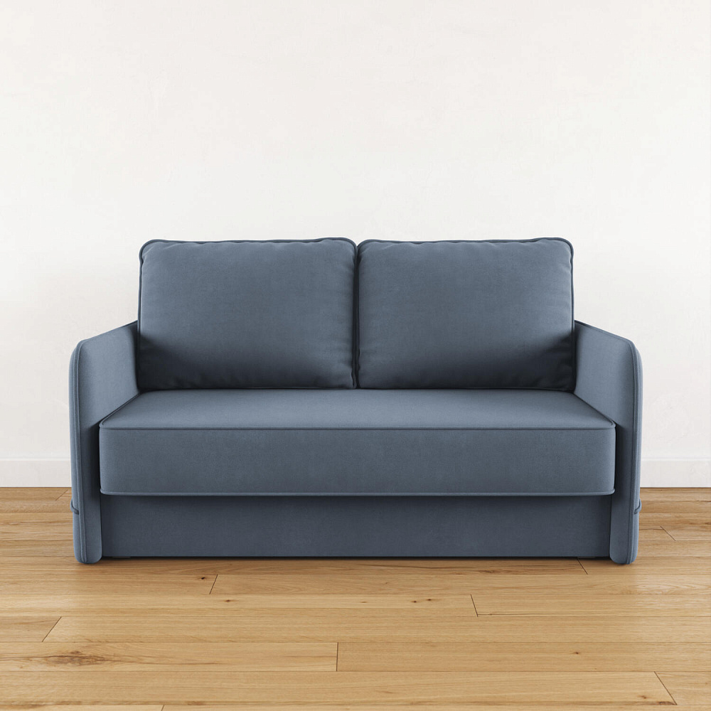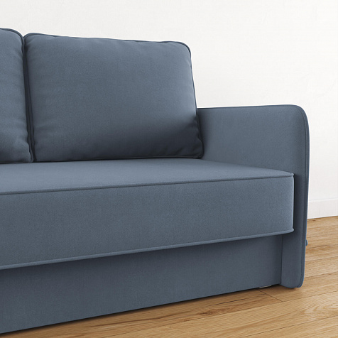 Двухместный диван «Симпл» с узкими подлокотниками станет стильным акцентом в современной гостиной или кухне. Кант на обивке из мягкого велюра придаёт дизайну завершённый вид, подчёркивает скруглённую форму углов. Механизм трансформации обеспечивает комфортное и ровное спальное место. Спинка дивана выполнена в основной обивочной ткани, что даёт возможность использовать диван для зонирования комнаты.