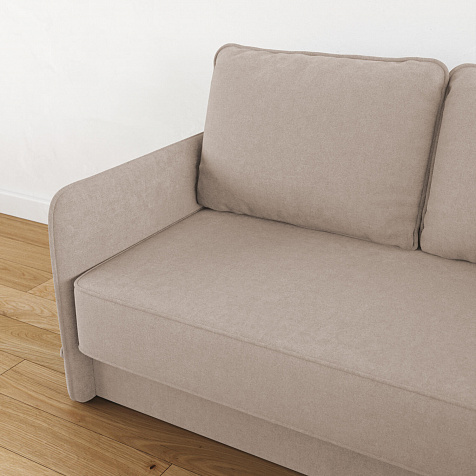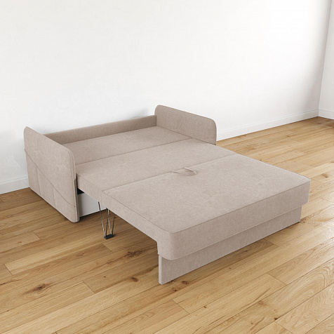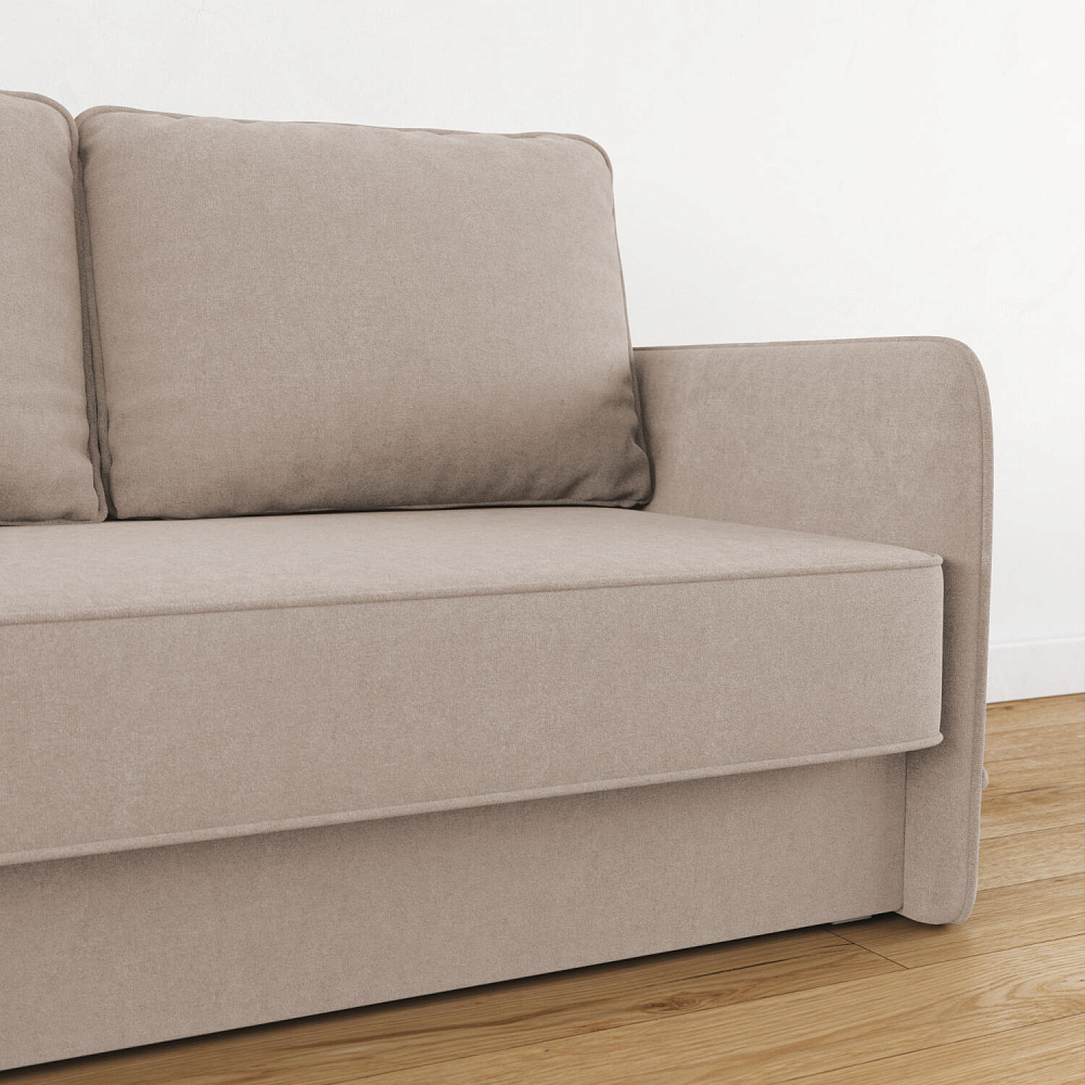 Механизм трансформации «Трёхсекционная Еврокнижка». Для трансформации нужно приподнять и вытянуть вперёд сиденье, затем опустить спинку. Двигается только передняя часть, поэтому отодвигать диван от стены не требуется.