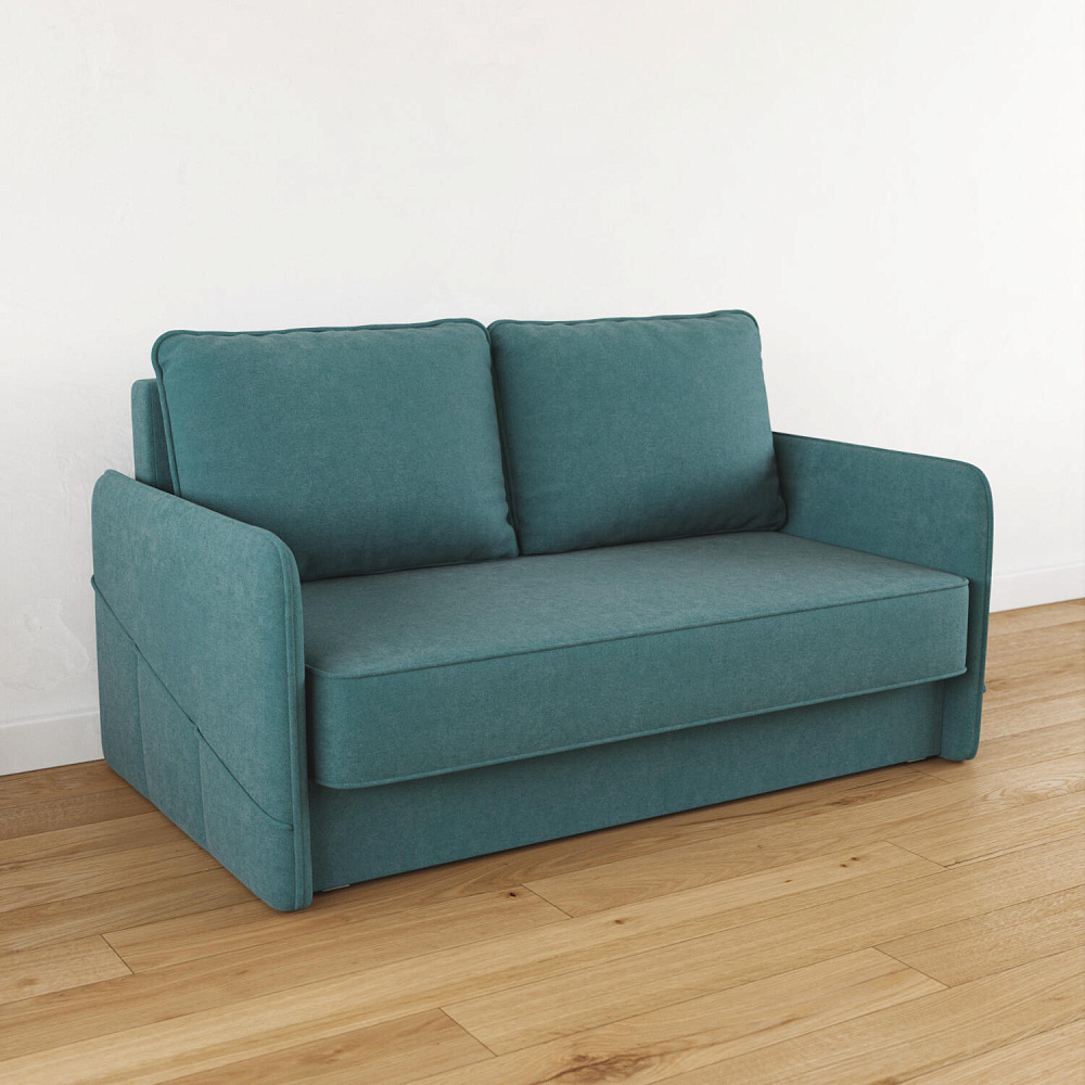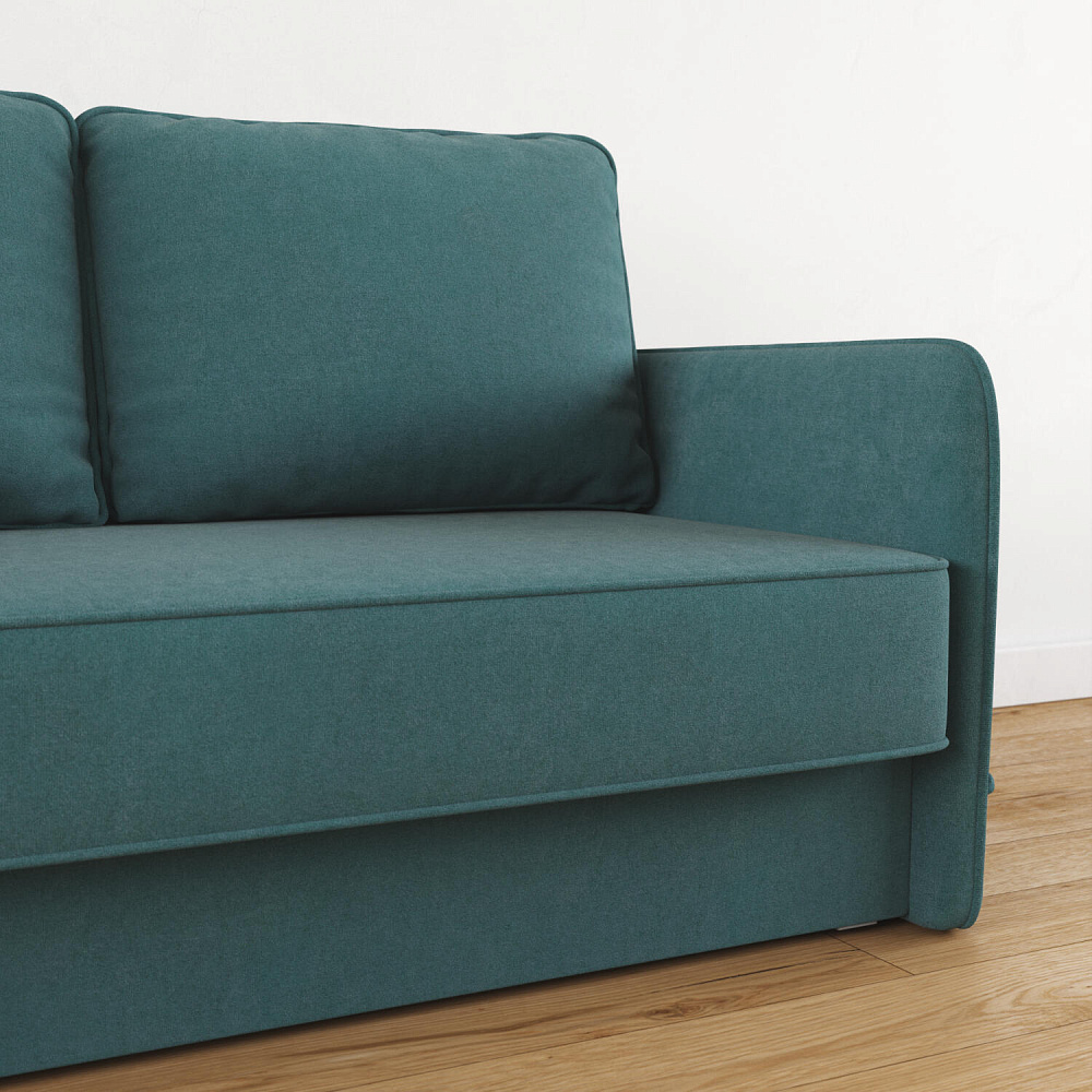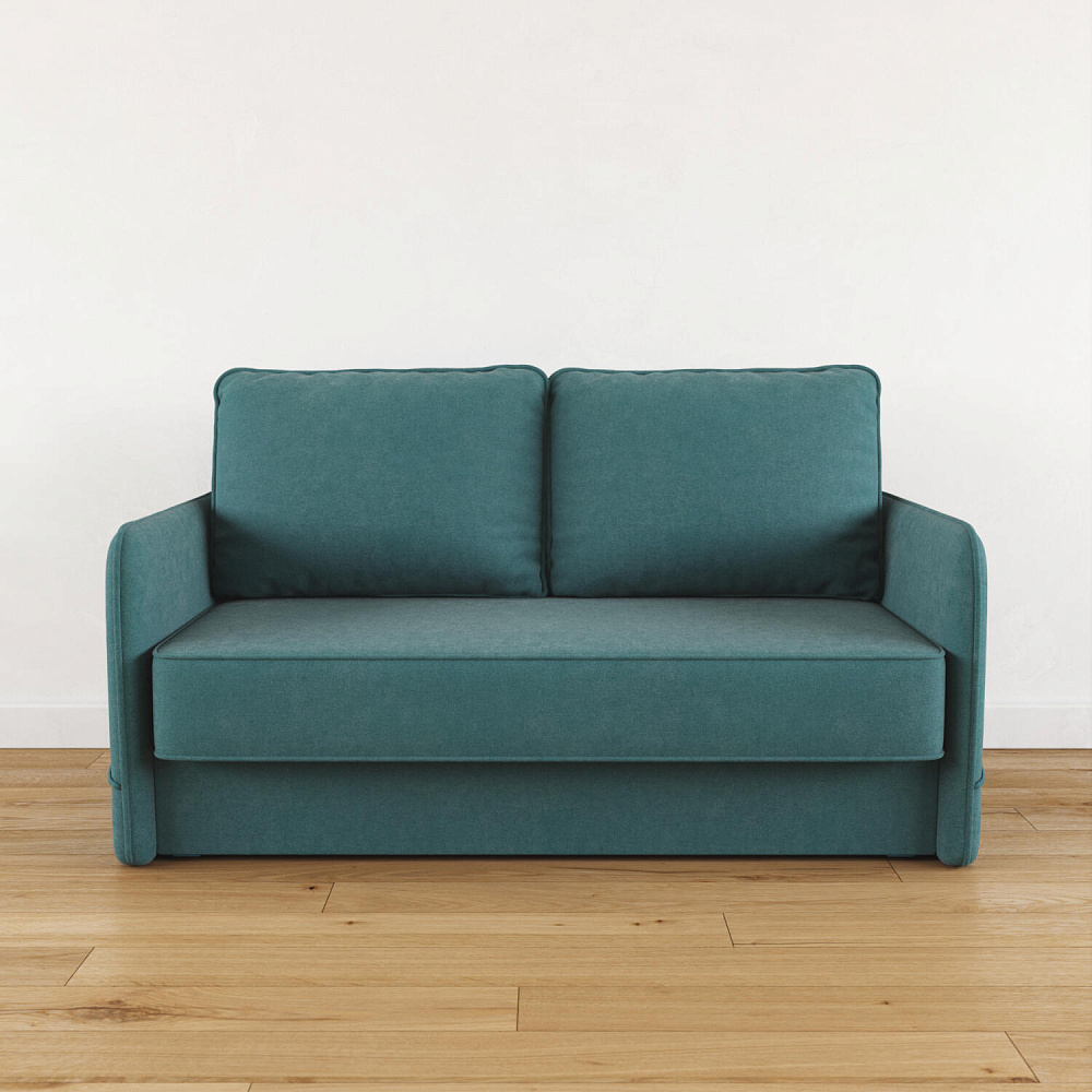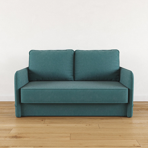 Двухместный диван «Симпл» с узкими подлокотниками станет стильным акцентом в современной гостиной или кухне. Кант на обивке из мягкого велюра придаёт дизайну завершённый вид, подчёркивает скруглённую форму углов. Механизм трансформации обеспечивает комфортное и ровное спальное место. Спинка дивана выполнена в основной обивочной ткани, что даёт возможность использовать диван для зонирования комнаты.