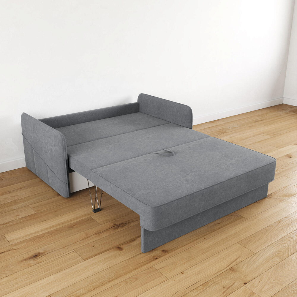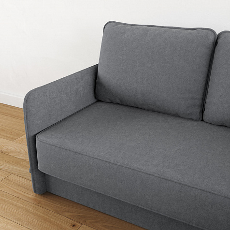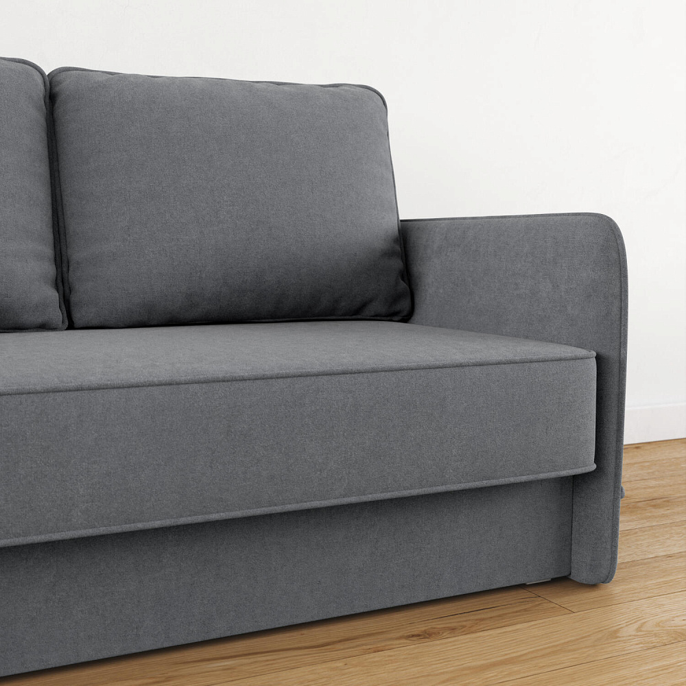 Механизм трансформации «Трёхсекционная Еврокнижка». Для трансформации нужно приподнять и вытянуть вперёд сиденье, затем опустить спинку. Двигается только передняя часть, поэтому отодвигать диван от стены не требуется.