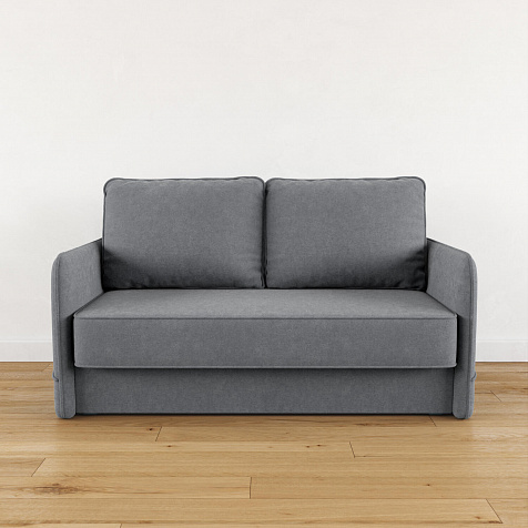 Двухместный диван «Симпл» с узкими подлокотниками станет стильным акцентом в современной гостиной или кухне. Кант на обивке из мягкого велюра придаёт дизайну завершённый вид, подчёркивает скруглённую форму углов. Механизм трансформации обеспечивает комфортное и ровное спальное место. Спинка дивана выполнена в основной обивочной ткани, что даёт возможность использовать диван для зонирования комнаты.