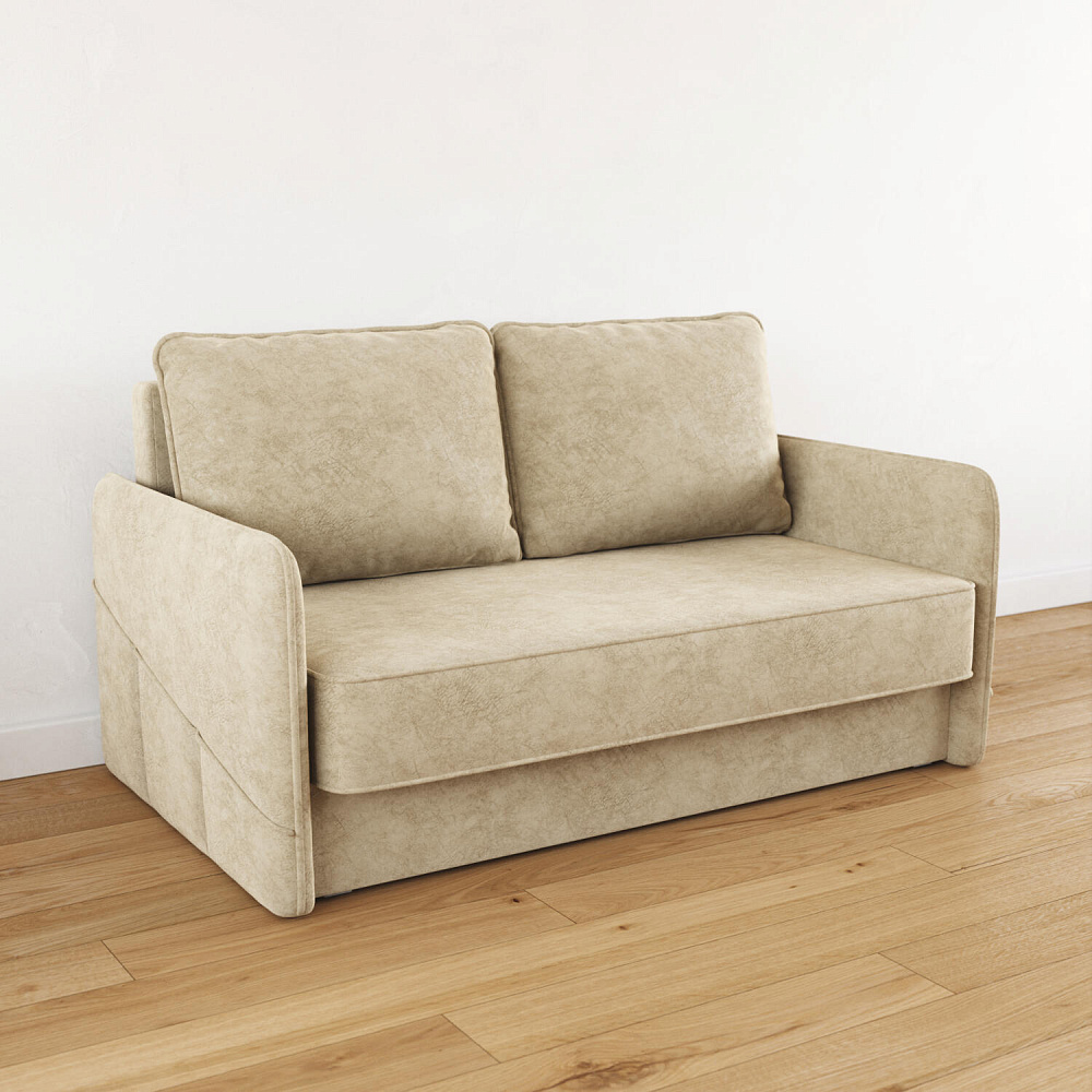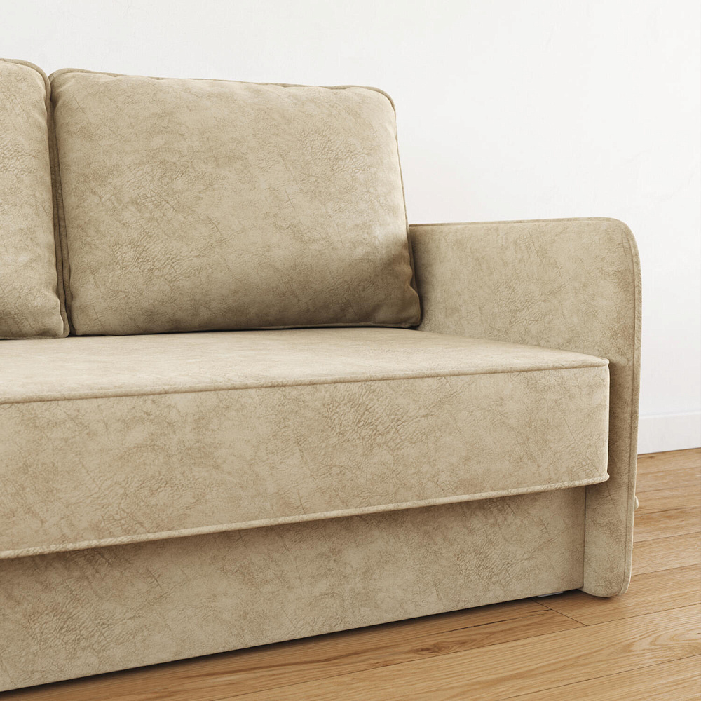 Двухместный диван «Симпл» с узкими подлокотниками станет стильным акцентом в современной гостиной или кухне. Кант на обивке из мягкого велюра придаёт дизайну завершённый вид, подчёркивает скруглённую форму углов. Механизм трансформации обеспечивает комфортное и ровное спальное место. Спинка дивана выполнена в основной обивочной ткани, что даёт возможность использовать диван для зонирования комнаты.