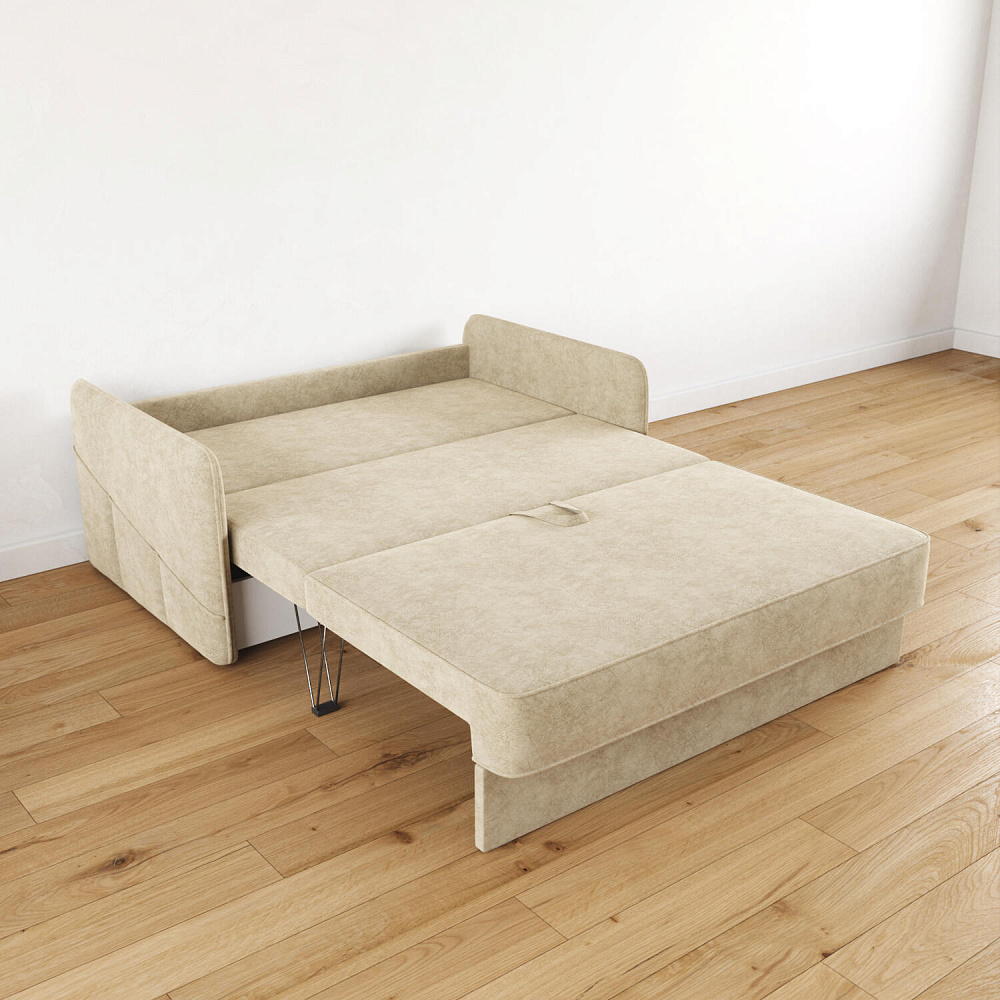 Механизм трансформации «Трёхсекционная Еврокнижка». Для трансформации нужно приподнять и вытянуть вперёд сиденье, затем опустить спинку. Двигается только передняя часть, поэтому отодвигать диван от стены не требуется.