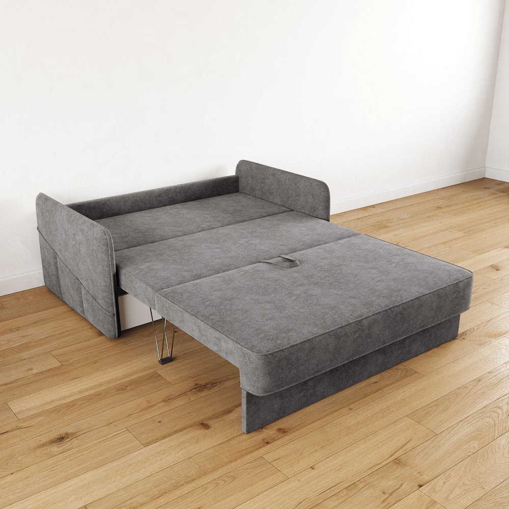Механизм трансформации «Трёхсекционная Еврокнижка». Для трансформации нужно приподнять и вытянуть вперёд сиденье, затем опустить спинку. Двигается только передняя часть, поэтому отодвигать диван от стены не требуется.