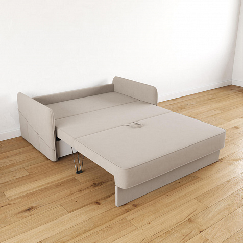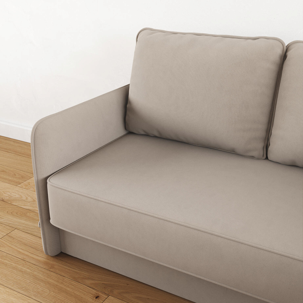 Механизм трансформации «Трёхсекционная Еврокнижка». Для трансформации нужно приподнять и вытянуть вперёд сиденье, затем опустить спинку. Двигается только передняя часть, поэтому отодвигать диван от стены не требуется.