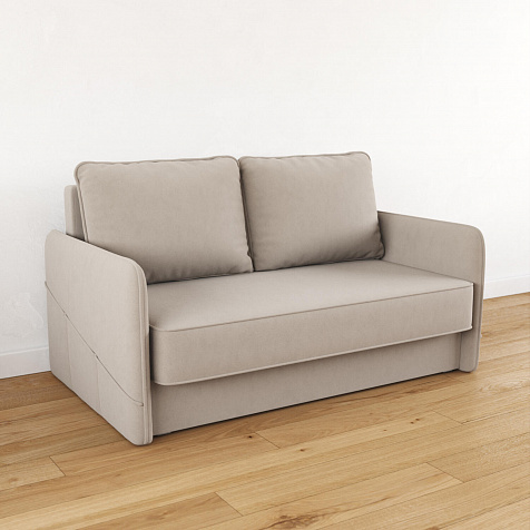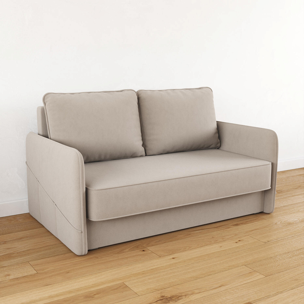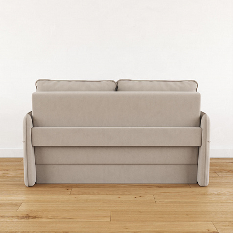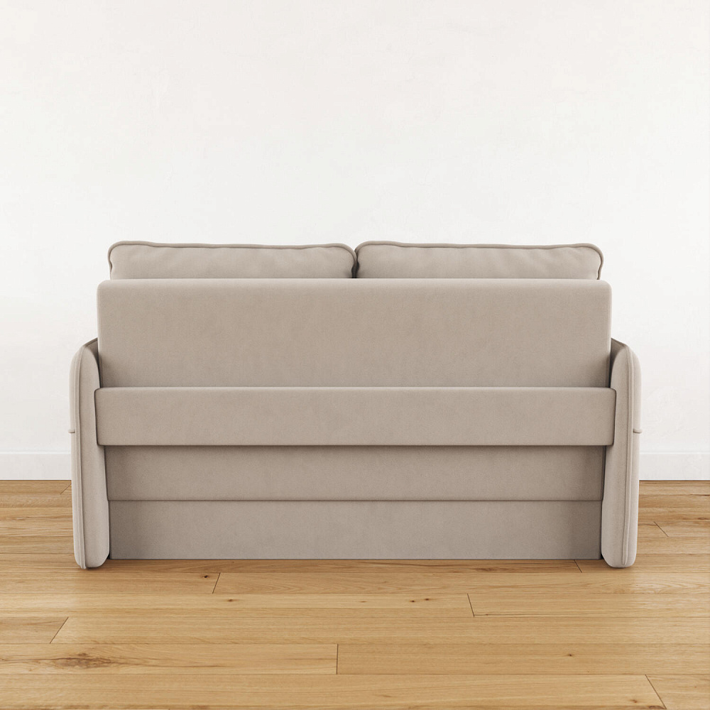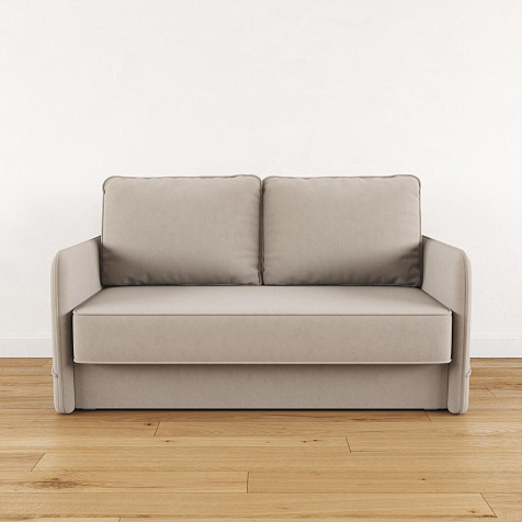 Двухместный диван «Симпл» с узкими подлокотниками станет стильным акцентом в современной гостиной или кухне. Кант на обивке из мягкого велюра придаёт дизайну завершённый вид, подчёркивает скруглённую форму углов. Механизм трансформации обеспечивает комфортное и ровное спальное место. Спинка дивана выполнена в основной обивочной ткани, что даёт возможность использовать диван для зонирования комнаты.