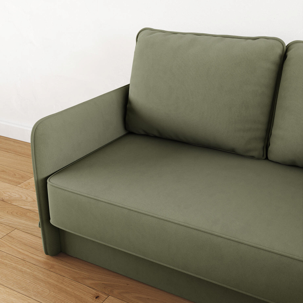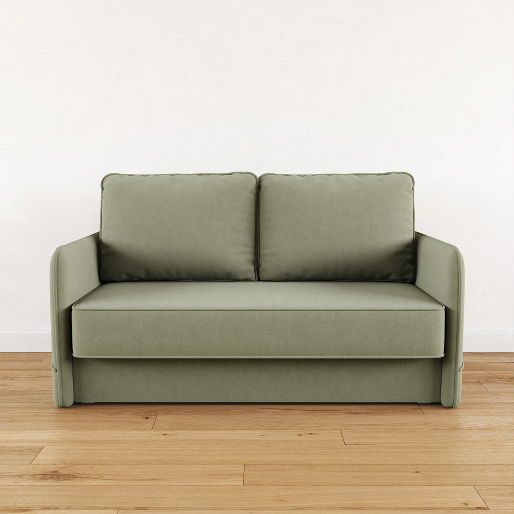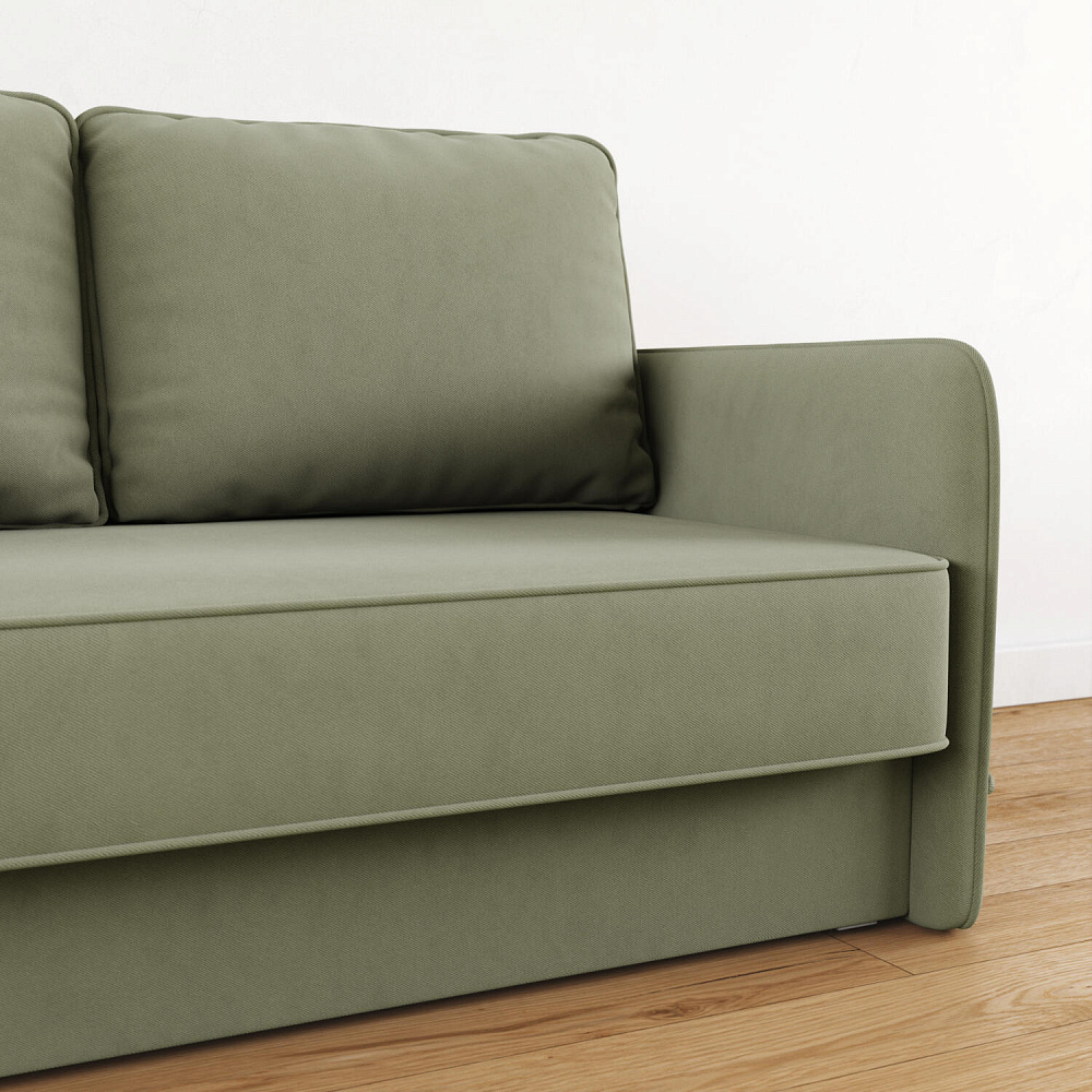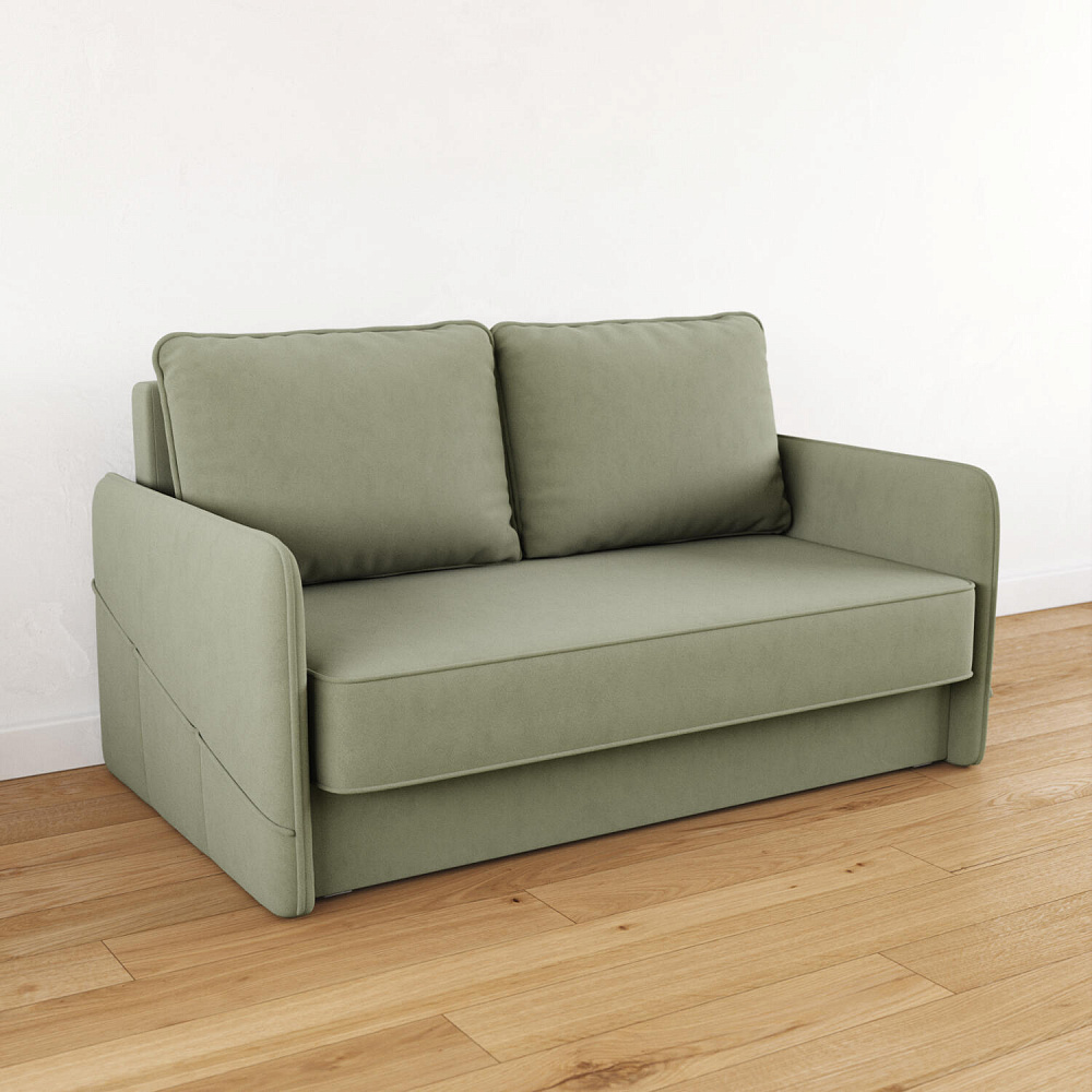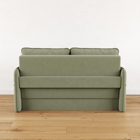 Двухместный диван «Симпл» с узкими подлокотниками станет стильным акцентом в современной гостиной или кухне. Кант на обивке из мягкого велюра придаёт дизайну завершённый вид, подчёркивает скруглённую форму углов. Механизм трансформации обеспечивает комфортное и ровное спальное место. Спинка дивана выполнена в основной обивочной ткани, что даёт возможность использовать диван для зонирования комнаты.