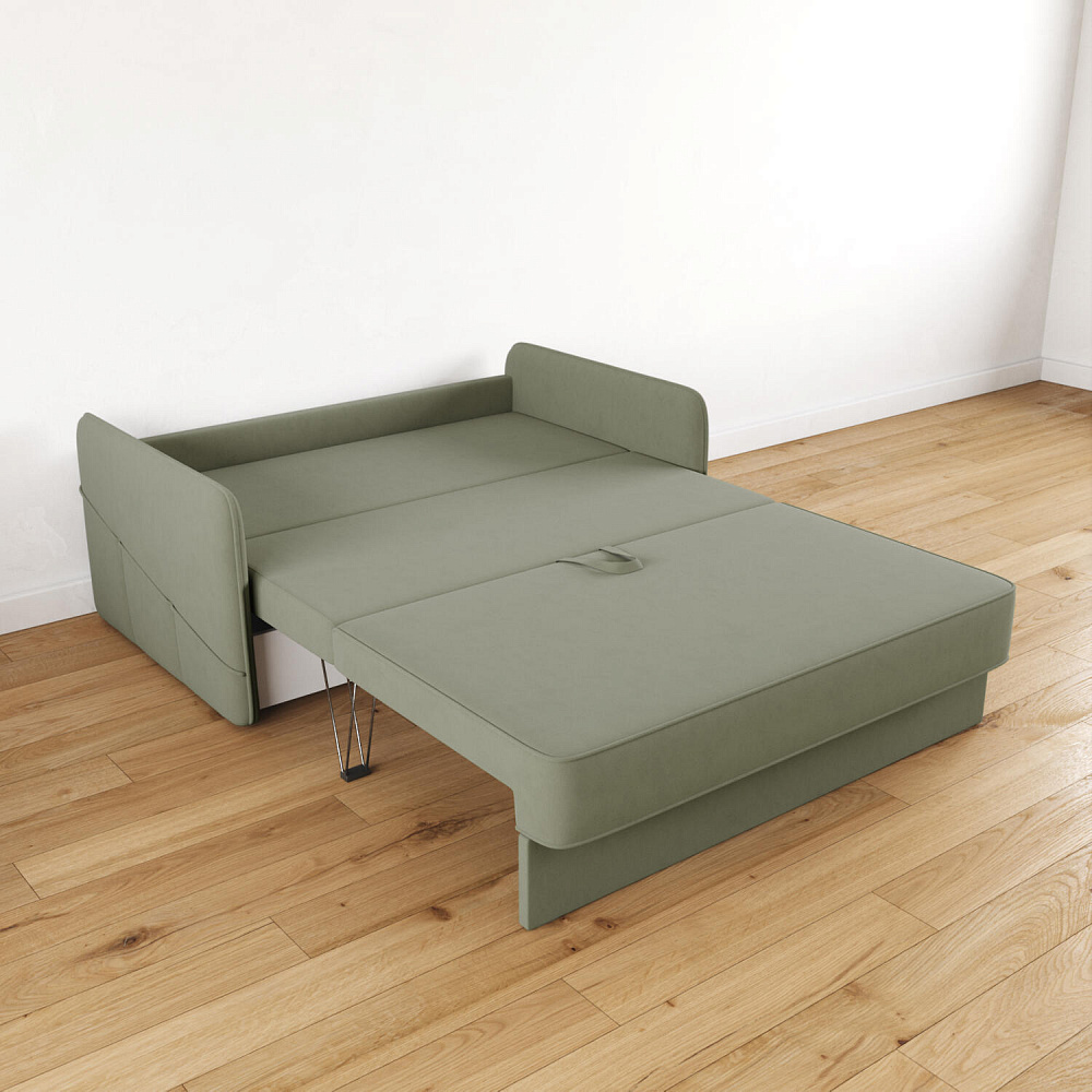 Механизм трансформации «Трёхсекционная Еврокнижка». Для трансформации нужно приподнять и вытянуть вперёд сиденье, затем опустить спинку. Двигается только передняя часть, поэтому отодвигать диван от стены не требуется.