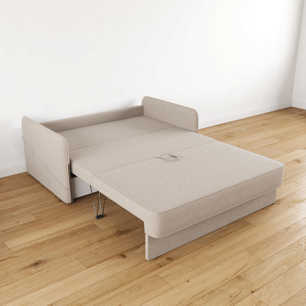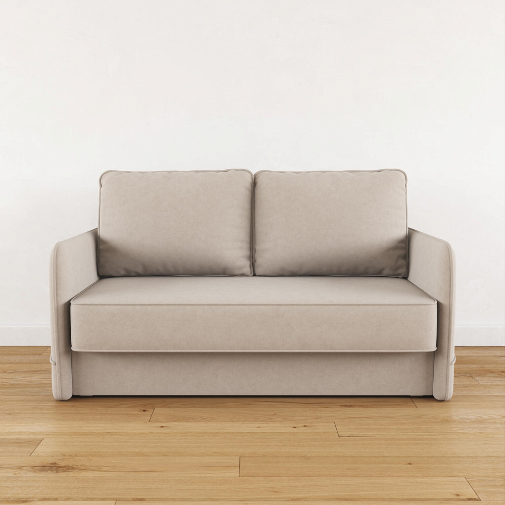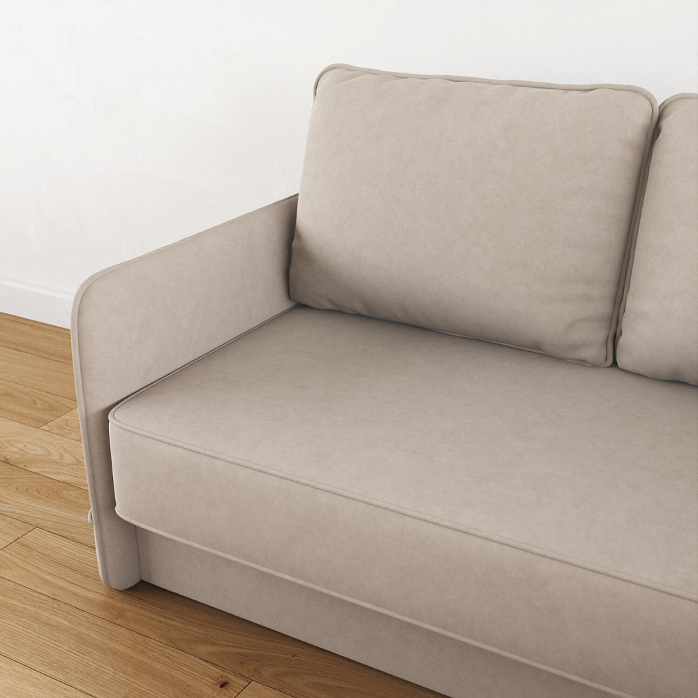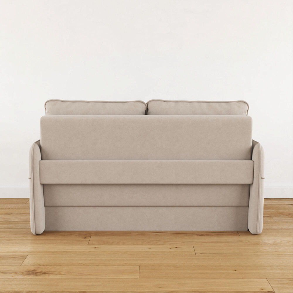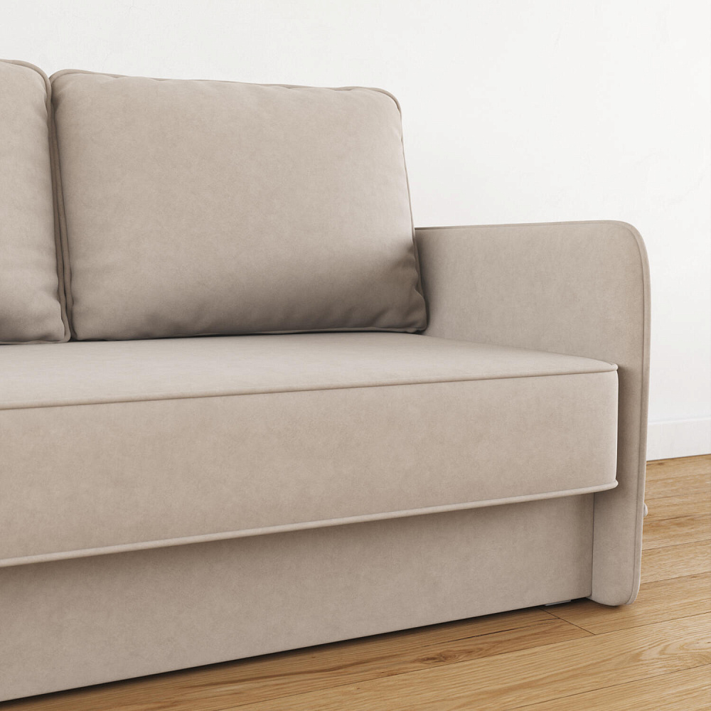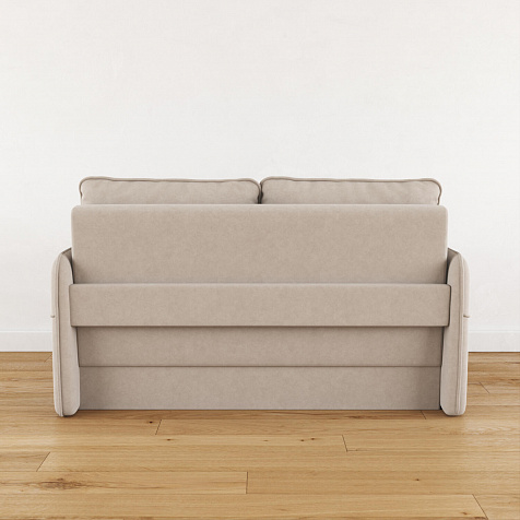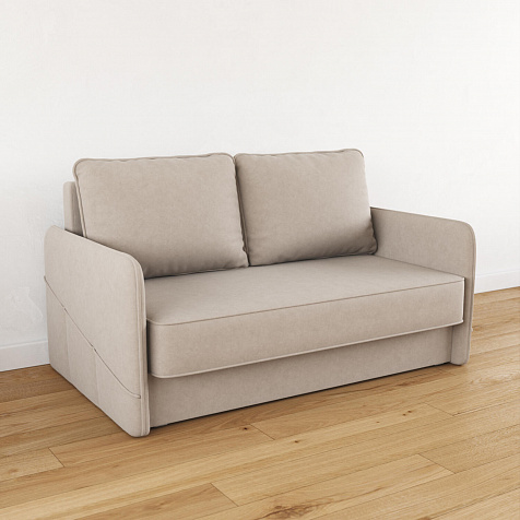 Двухместный диван «Симпл» с узкими подлокотниками станет стильным акцентом в современной гостиной или кухне. Кант на обивке из мягкого велюра придаёт дизайну завершённый вид, подчёркивает скруглённую форму углов. Механизм трансформации обеспечивает комфортное и ровное спальное место. Спинка дивана выполнена в основной обивочной ткани, что даёт возможность использовать диван для зонирования комнаты.
