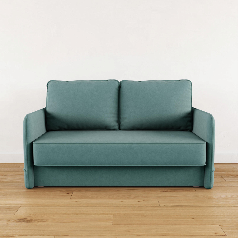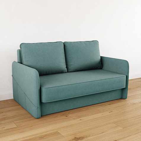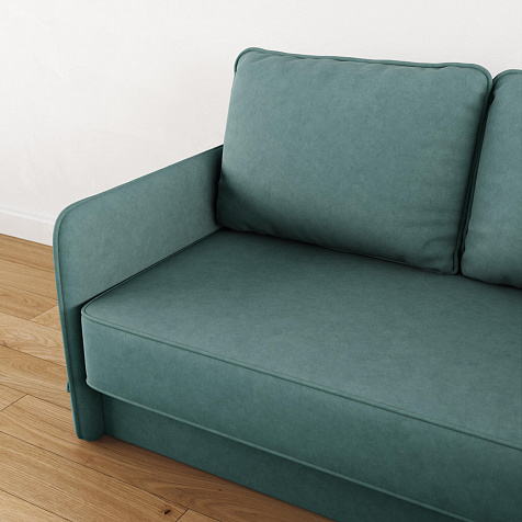 Двухместный диван «Симпл» с узкими подлокотниками станет стильным акцентом в современной гостиной или кухне. Кант на обивке из мягкого велюра придаёт дизайну завершённый вид, подчёркивает скруглённую форму углов. Механизм трансформации обеспечивает комфортное и ровное спальное место. Спинка дивана выполнена в основной обивочной ткани, что даёт возможность использовать диван для зонирования комнаты.