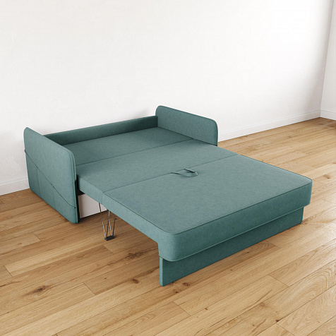 Механизм трансформации «Трёхсекционная Еврокнижка». Для трансформации нужно приподнять и вытянуть вперёд сиденье, затем опустить спинку. Двигается только передняя часть, поэтому отодвигать диван от стены не требуется.