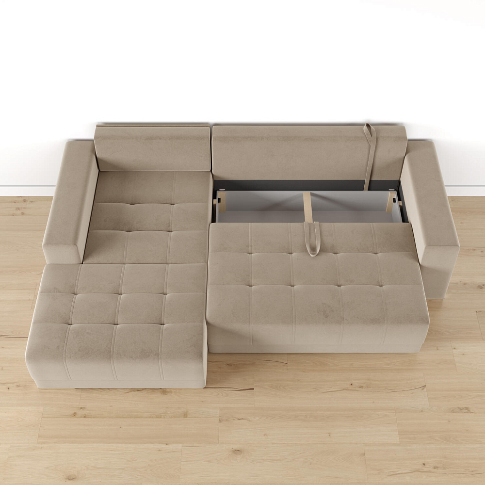 Ниша для белья. В основной секции дивана расположен просторный короб для хранения постельного белья, подушек и одеял.