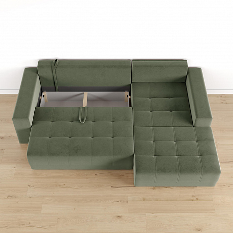 Ниша для белья. В основной секции дивана расположен просторный короб для хранения постельного белья, подушек и одеял.