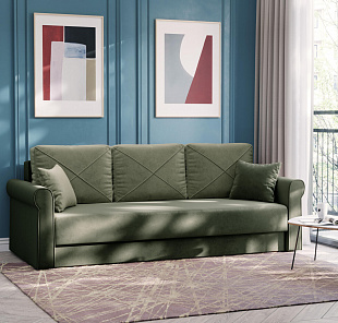 Механизм трансформации «Аккордеон». Чтобы разложить диван, необходимо приподнять сиденье и слегка потянуть на себя. В таком виде диван представляет собой единую конструкцию без петель и швов, которая обеспечит непревзойдённо комфортный сон. Для лёгкого раскладывания механизм усилен газовыми амортизаторами, а прорезиненные ролики защищают напольное покрытие от истирания.