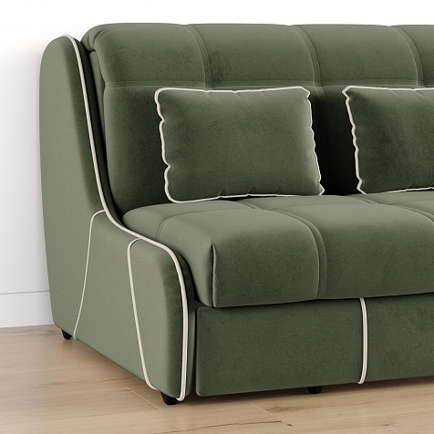 Механизм трансформации «Аккордеон». Чтобы разложить диван, необходимо приподнять сиденье и слегка потянуть на себя. В таком виде диван представляет собой единую конструкцию без петель и швов, которая обеспечит непревзойдённо комфортный сон. Для лёгкого раскладывания механизм усилен газовыми амортизаторами, а прорезиненные ролики защищают напольное покрытие от истирания.