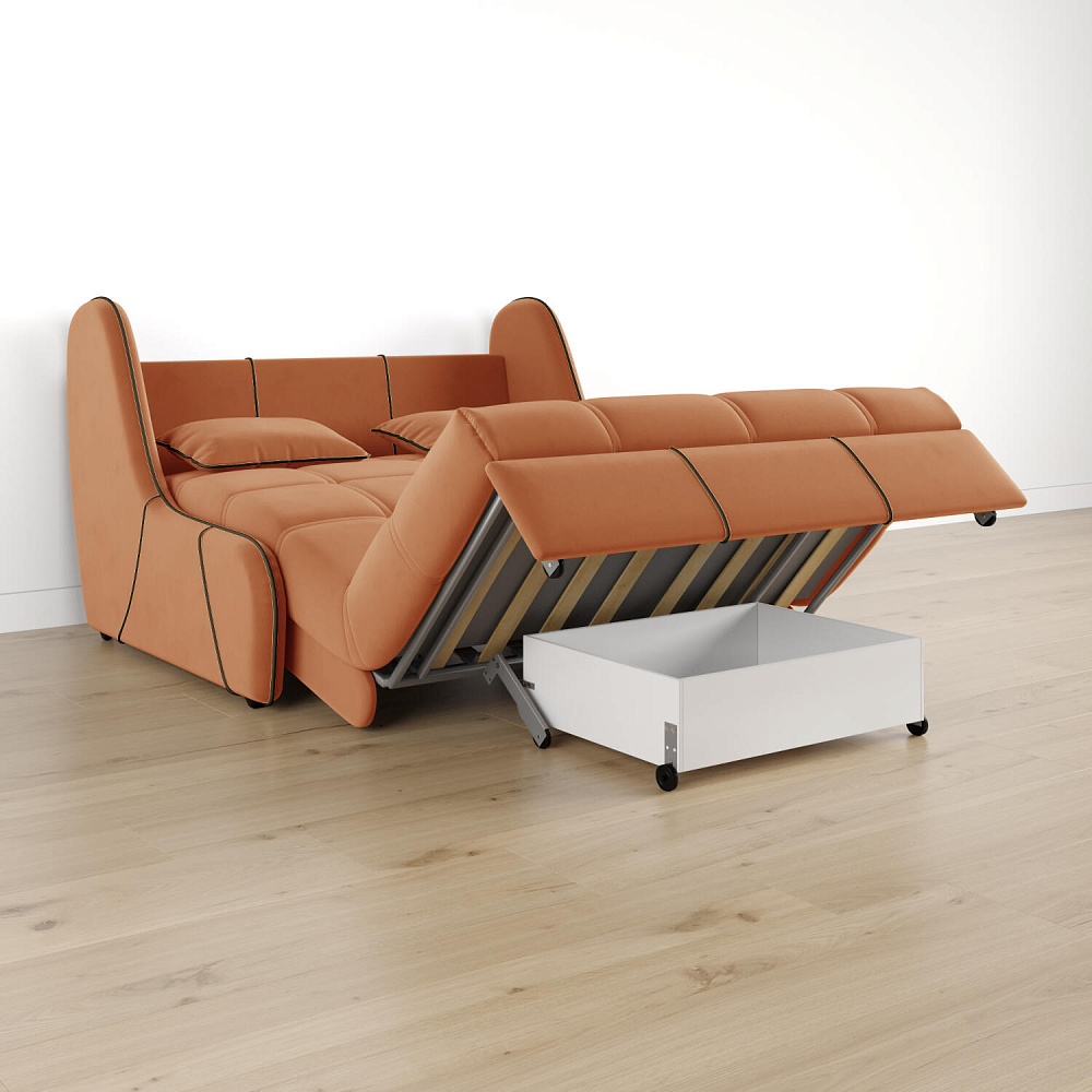 Механизм трансформации «Аккордеон». Чтобы разложить диван, необходимо приподнять сиденье и слегка потянуть на себя. В таком виде диван представляет собой единую конструкцию без петель и швов, которая обеспечит непревзойдённо комфортный сон. Для лёгкого раскладывания механизм усилен газовыми амортизаторами, а прорезиненные ролики защищают напольное покрытие от истирания.