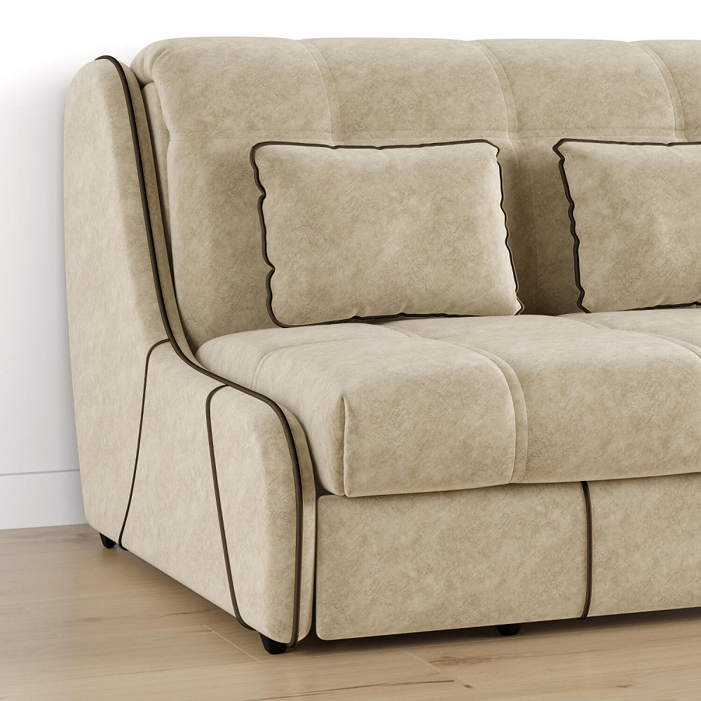 Механизм трансформации «Аккордеон». Чтобы разложить диван, необходимо приподнять сиденье и слегка потянуть на себя. В таком виде диван представляет собой единую конструкцию без петель и швов, которая обеспечит непревзойдённо комфортный сон. Для лёгкого раскладывания механизм усилен газовыми амортизаторами, а прорезиненные ролики защищают напольное покрытие от истирания.