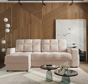 Механизм трансформации «Аккордеон». Чтобы разложить диван, необходимо приподнять сиденье и слегка потянуть на себя. В таком виде диван представляет собой единую конструкцию без петель и швов, которая обеспечит непревзойдённо комфортный сон. Для лёгкого раскладывания механизм усилен газовыми амортизаторами, а прорезиненные ролики защищают напольное покрытие от истирания.