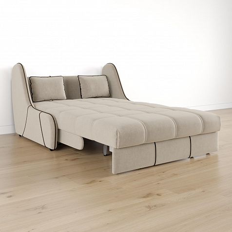 Размер спального места — 127 х 200 cм. Удобное и компактное место для сна может использоваться в качестве гостевого варианта кровати.