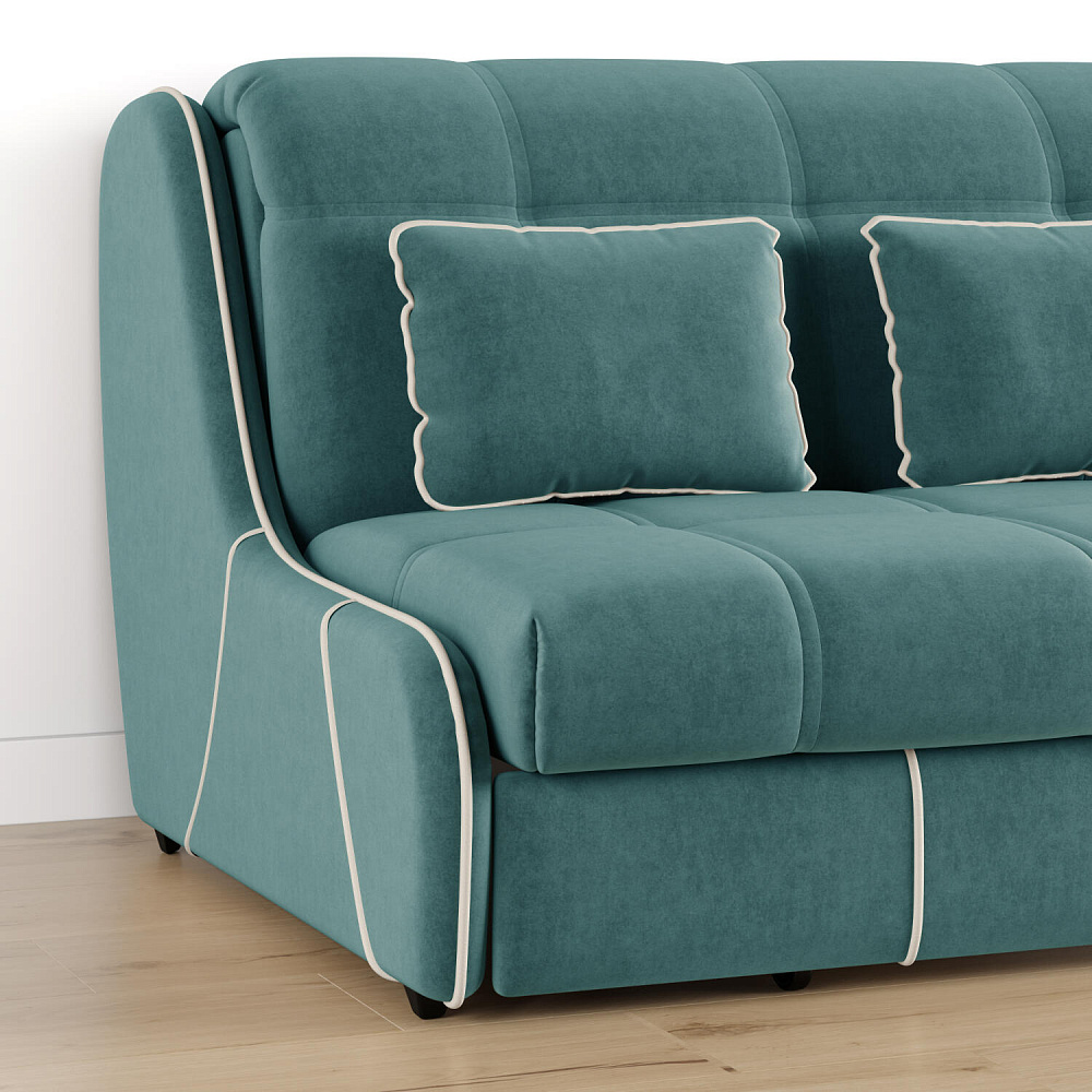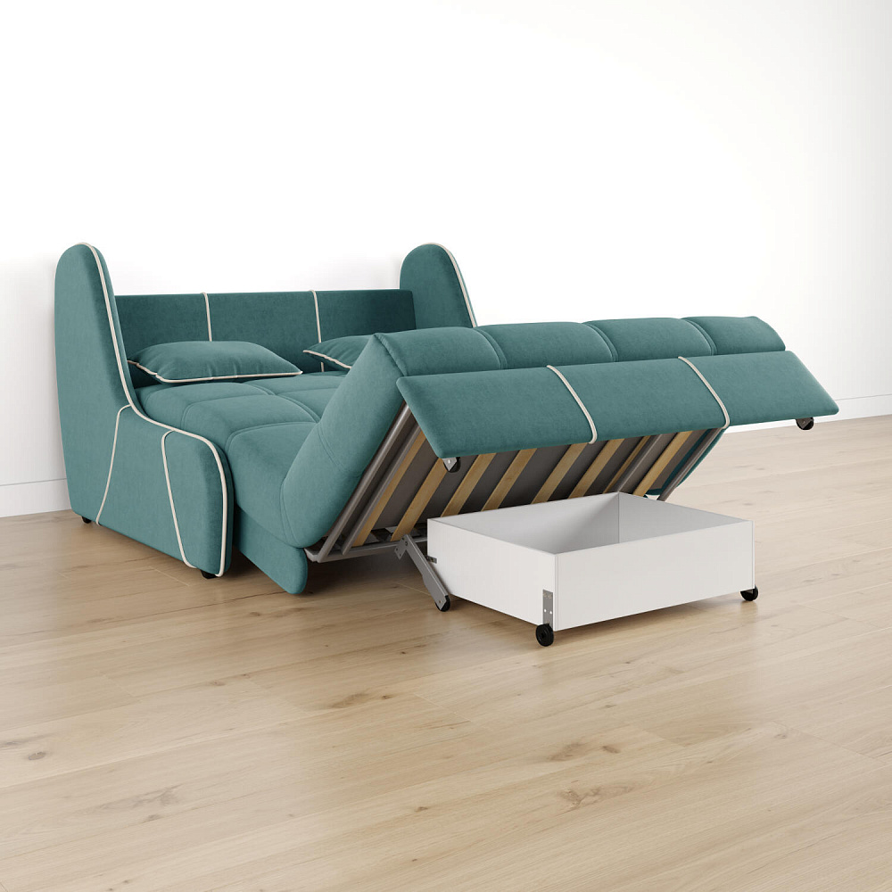 Механизм трансформации «Аккордеон». Чтобы разложить диван, необходимо приподнять сиденье и слегка потянуть на себя. В таком виде диван представляет собой единую конструкцию без петель и швов, которая обеспечит непревзойдённо комфортный сон. Для лёгкого раскладывания механизм усилен газовыми амортизаторами, а прорезиненные ролики защищают напольное покрытие от истирания.