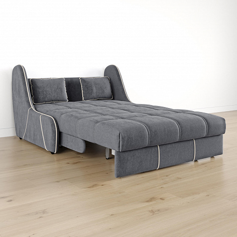 Размер спального места — 127 х 200 cм. Удобное и компактное место для сна может использоваться в качестве гостевого варианта кровати.