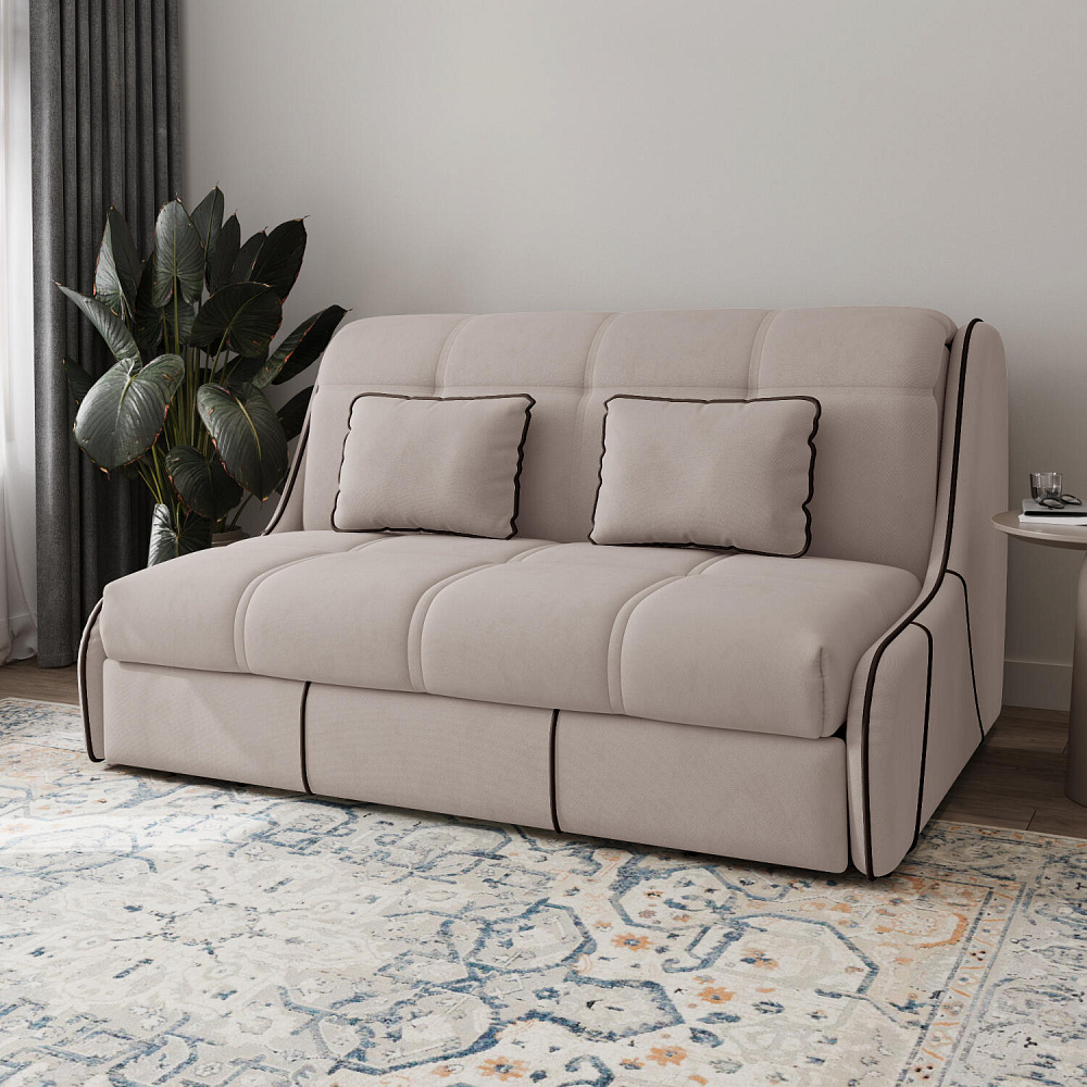Диван «Бонн» идеально подойдет для обустройства квартир-студий, гостевых и детских комнат. С помощью удобного механизма трансформации «Аккордеон» диван легко превращается в кровать с ровным спальным местом. Плавность форм и лаконичность модели подчеркивают акцентные линии декоративного канта. Благодаря отсутствию подлокотников «Бонн» не займёт много места в помещении.