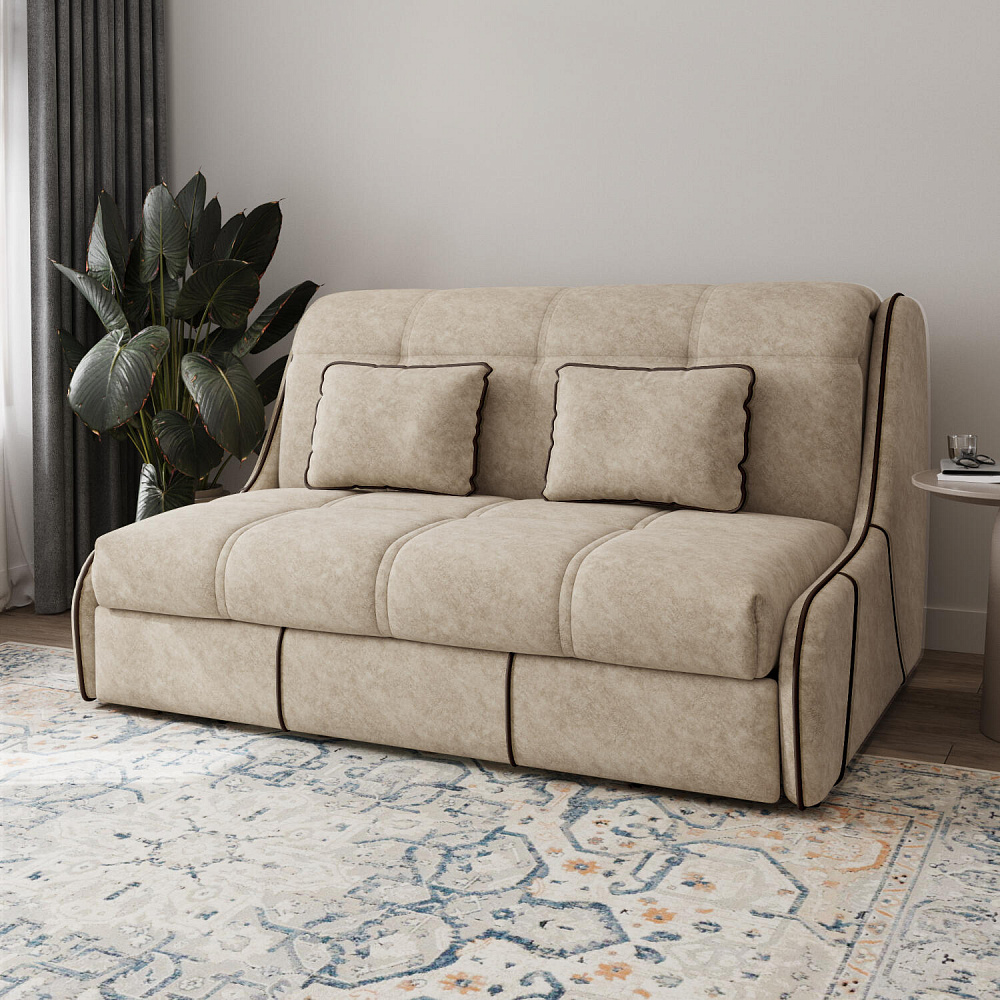 Диван «Бонн» идеально подойдет для обустройства квартир-студий, гостевых и детских комнат. С помощью удобного механизма трансформации «Аккордеон» диван легко превращается в кровать с ровным спальным местом. Плавность форм и лаконичность модели подчеркивают акцентные линии декоративного канта. Благодаря отсутствию подлокотников «Бонн» не займёт много места в помещении.