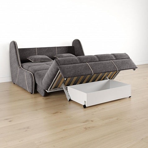 Механизм трансформации «Аккордеон». Чтобы разложить диван, необходимо приподнять сиденье и слегка потянуть на себя. В таком виде диван представляет собой единую конструкцию без петель и швов, которая обеспечит непревзойдённо комфортный сон. Для лёгкого раскладывания механизм усилен газовыми амортизаторами, а прорезиненные ролики защищают напольное покрытие от истирания.