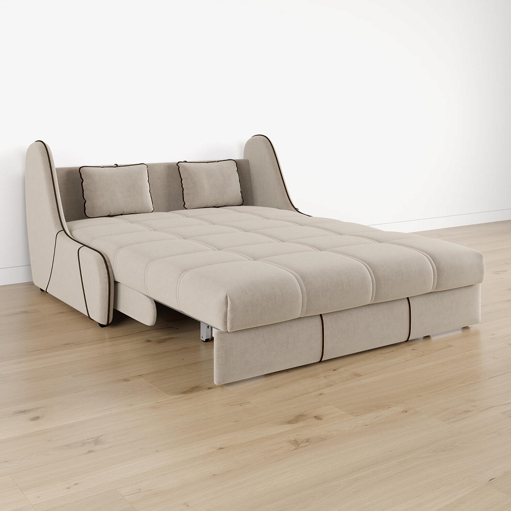 Размер спального места — 147 х 200 см. Удобное и компактное место для сна может использоваться в качестве гостевого варианта кровати.