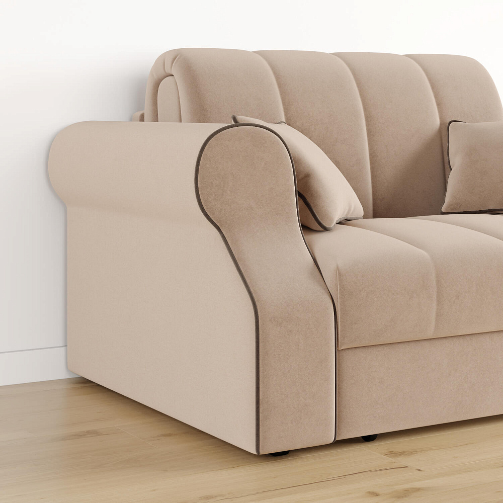 Диван «Париж» идеально подойдёт для обустройства гостевых, компактных спален и детских комнат, где нет возможности разместить классическую кровать. Диван с удобными подлокотниками и глубоким сиденьем позволит максимально расслабиться после тяжёлого дня. Благодаря простому в использовании механизму трансформации «Аккордеон», диван легко превращается в односпальную кровать с ровным спальным местом. Плавность форм и лаконичность модели подчёркивают акцентные линии декоративного канта.