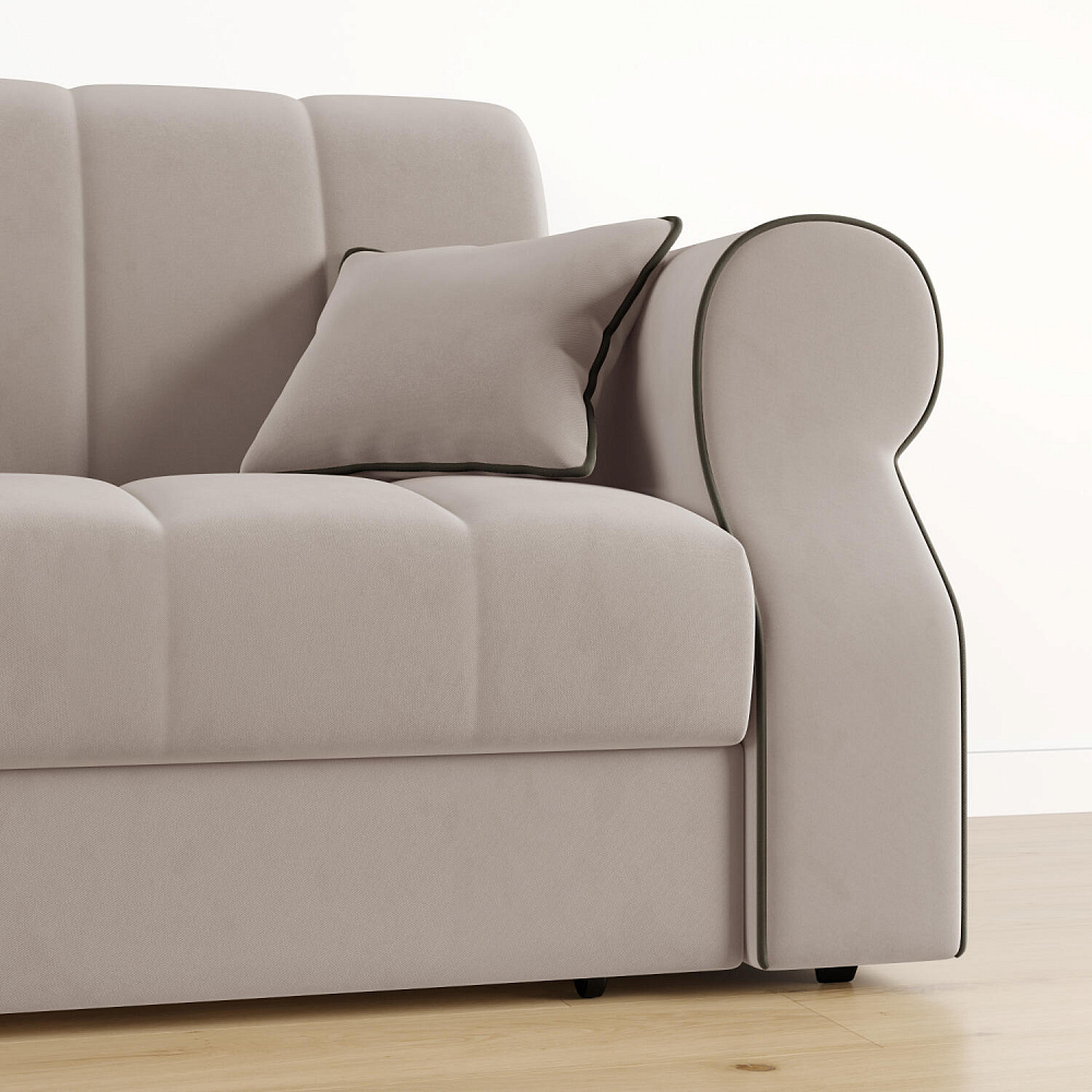 Диван «Париж» идеально подойдёт для обустройства гостевых, компактных спален и детских комнат, где нет возможности разместить классическую кровать. Диван с удобными подлокотниками и глубоким сиденьем позволит максимально расслабиться после тяжёлого дня. Благодаря простому в использовании механизму трансформации «Аккордеон», диван легко превращается в односпальную кровать с ровным спальным местом. Плавность форм и лаконичность модели подчёркивают акцентные линии декоративного канта.