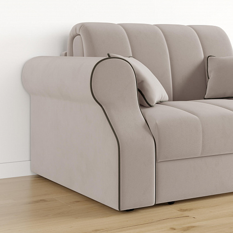 Механизм трансформации «Аккордеон». Чтобы разложить диван, необходимо приподнять сиденье и слегка потянуть на себя, далее диван разложится сам. В таком виде диван представляет собой единую конструкцию без петель и швов, которая обеспечит непревзойдённо комфортный сон. Для лёгкого разложения механизм усилен газовыми амортизаторами, а прорезиненные ролики защитят напольное покрытие от истирания.