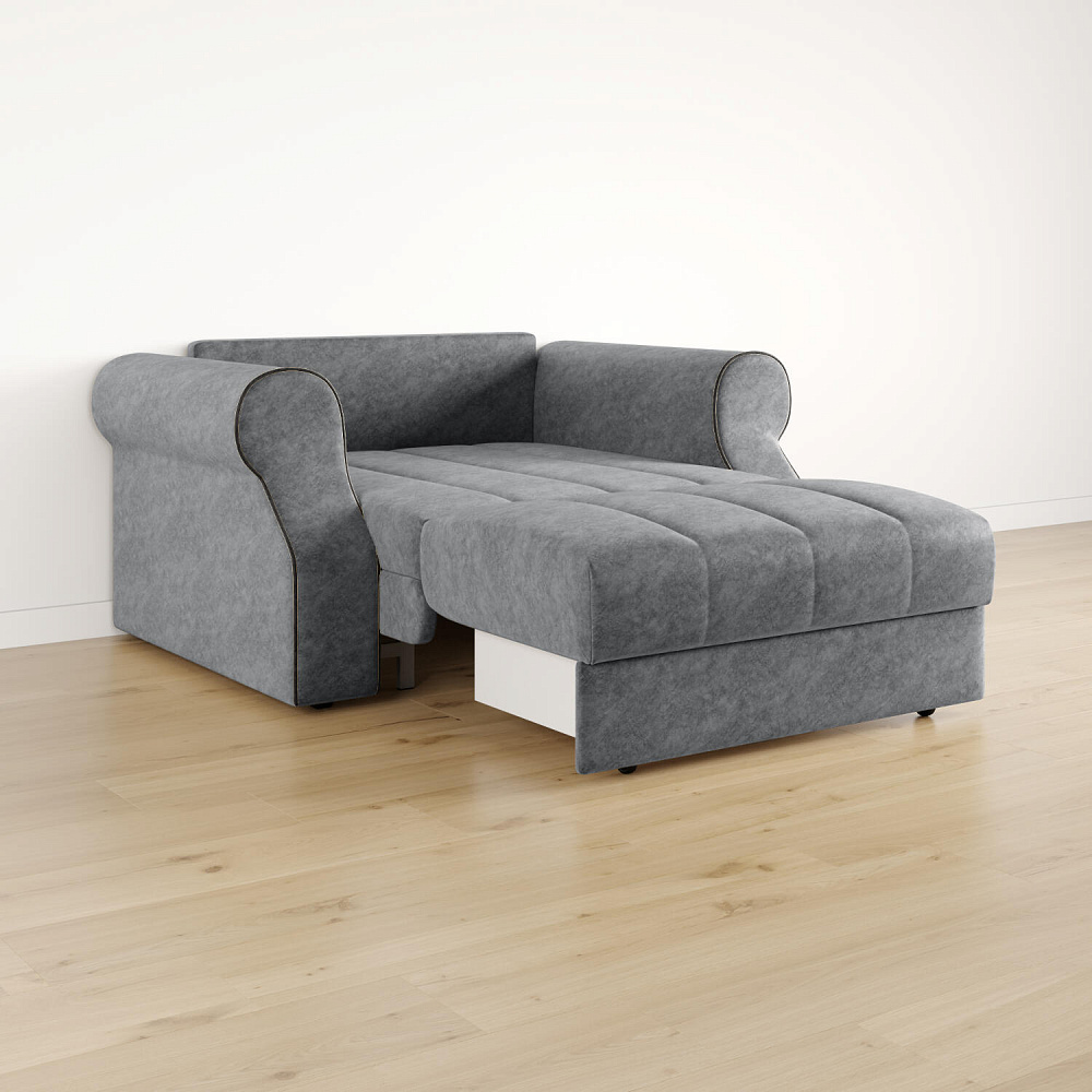 Размер спального места — 127 х 200 см. Удобное и компактное место для сна может использоваться в качестве гостевого варианта кровати.