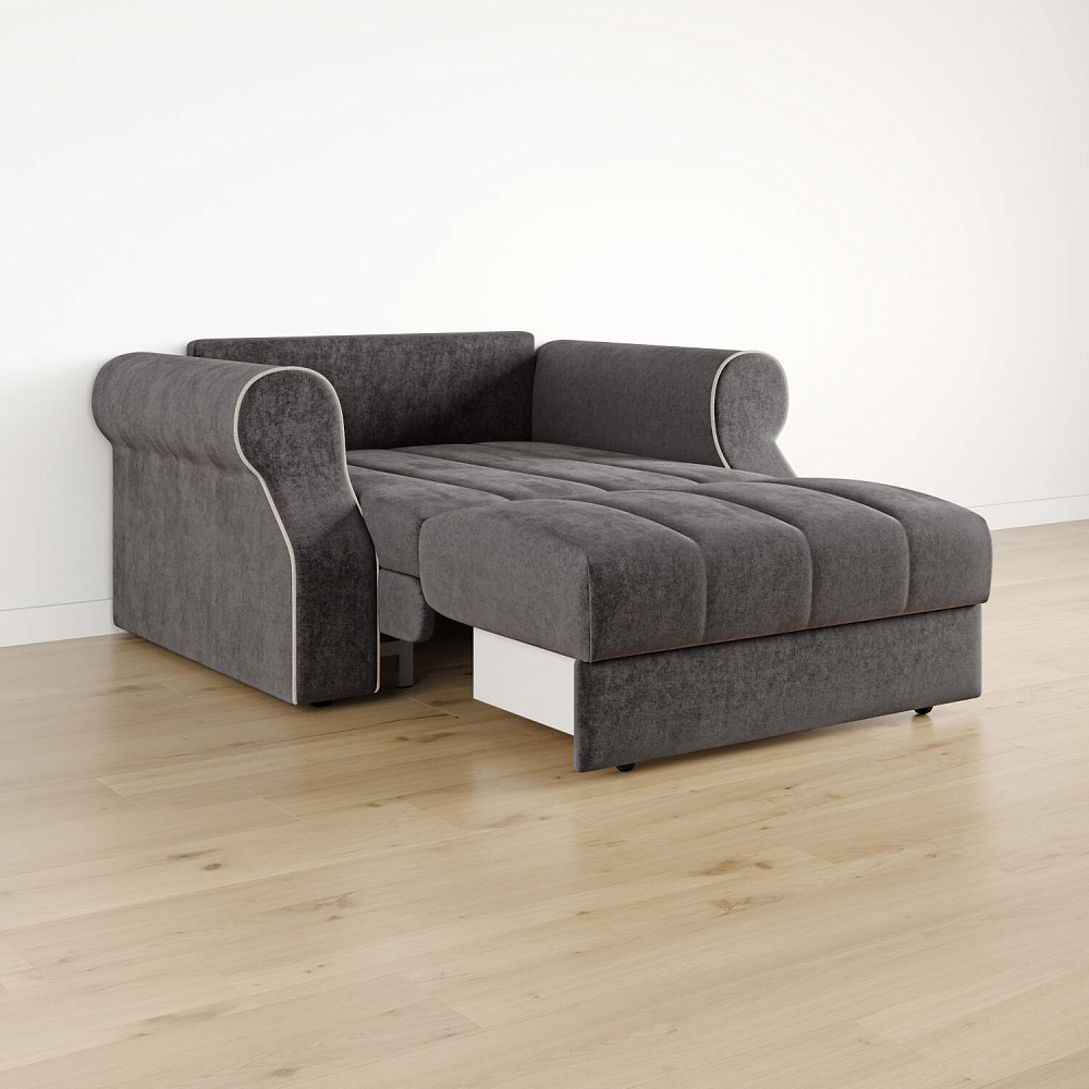 Размер спального места — 127 х 200 см. Удобное и компактное место для сна может использоваться в качестве гостевого варианта кровати.