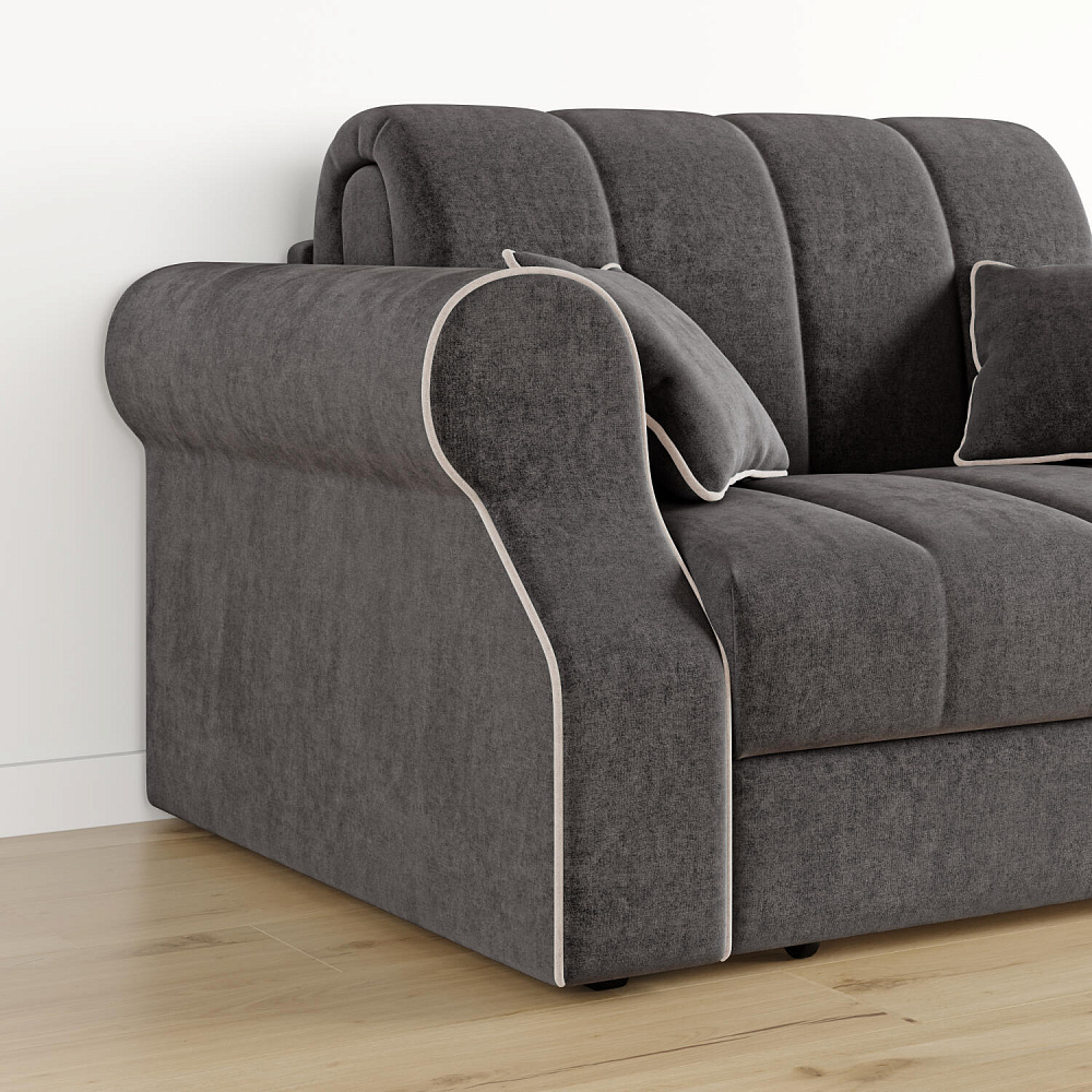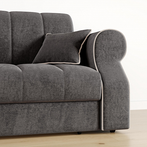 Диван «Париж» идеально подойдёт для обустройства гостевых, компактных спален и детских комнат, где нет возможности разместить классическую кровать. Диван с удобными подлокотниками и глубоким сиденьем позволит максимально расслабиться после тяжёлого дня. Благодаря простому в использовании механизму трансформации «Аккордеон», диван легко превращается в односпальную кровать с ровным спальным местом. Плавность форм и лаконичность модели подчёркивают акцентные линии декоративного канта.