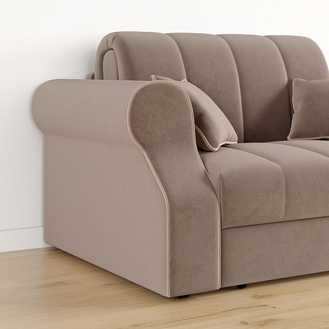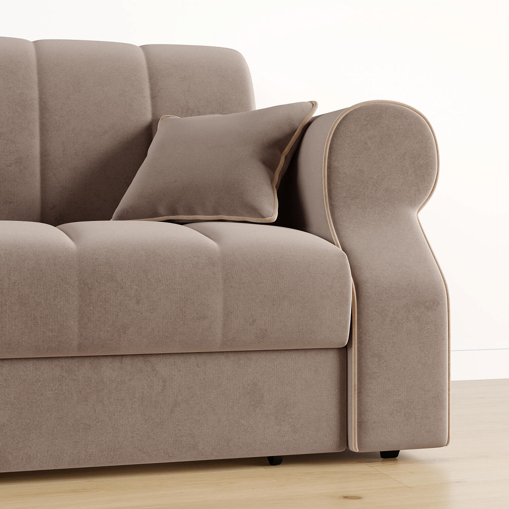 Диван «Париж» идеально подойдёт для обустройства гостевых, компактных спален и детских комнат, где нет возможности разместить классическую кровать. Диван с удобными подлокотниками и глубоким сиденьем позволит максимально расслабиться после тяжёлого дня. Благодаря простому в использовании механизму трансформации «Аккордеон», диван легко превращается в кровать с ровным спальным местом. Плавность форм и лаконичность модели подчёркивают акцентные линии декоративного канта.