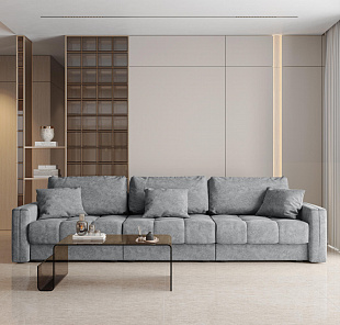 Механизм трансформации «Аккордеон». Чтобы разложить диван, необходимо приподнять сиденье и слегка потянуть на себя, далее диван разложится сам. В таком виде диван представляет собой единую конструкцию без петель и швов, которая обеспечит непревзойдённо комфортный сон. Для лёгкого разложения механизм усилен газовыми амортизаторами, а прорезиненные ролики защитят напольное покрытие от истирания.