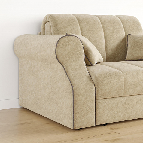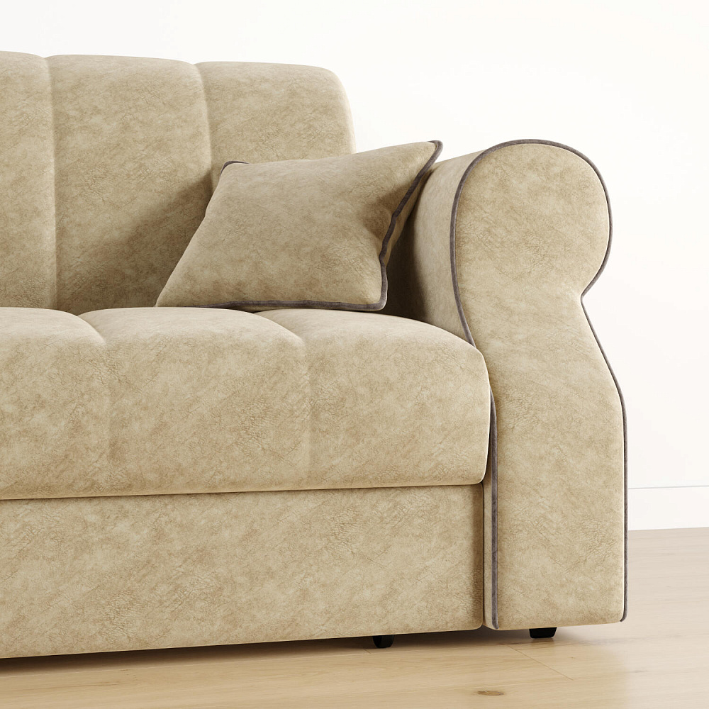 Диван «Париж» идеально подойдёт для обустройства гостевых, компактных спален и детских комнат, где нет возможности разместить классическую кровать. Диван с удобными подлокотниками и глубоким сиденьем позволит максимально расслабиться после тяжёлого дня. Благодаря простому в использовании механизму трансформации «Аккордеон», диван легко превращается в кровать с ровным спальным местом. Плавность форм и лаконичность модели подчёркивают акцентные линии декоративного канта.