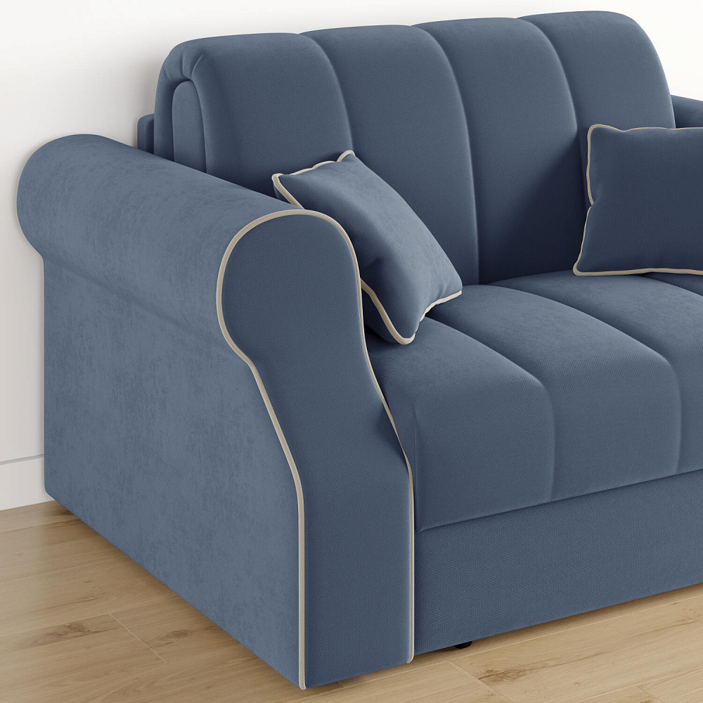 Диван «Париж» идеально подойдёт для обустройства гостевых, компактных спален и детских комнат, где нет возможности разместить классическую кровать. Диван с удобными подлокотниками и глубоким сиденьем позволит максимально расслабиться после тяжёлого дня. Благодаря простому в использовании механизму трансформации «Аккордеон», диван легко превращается в кровать с ровным спальным местом. Плавность форм и лаконичность модели подчёркивают акцентные линии декоративного канта.