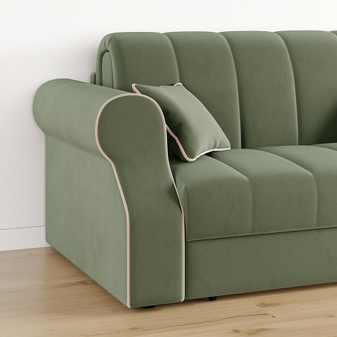 Диван «Париж» идеально подойдет для обустройства гостевых, компактных спален и детских комнат, где нет возможности разместить классическую кровать. Диван с удобными подлокотниками и глубоким сиденьем позволит максимально расслабиться после тяжёлого дня. Благодаря простому в использовании механизму трансформации «Аккордеон», диван легко превращается в кровать с ровным спальным местом. Плавность форм и лаконичность модели подчеркивают акцентные линии декоративного канта.