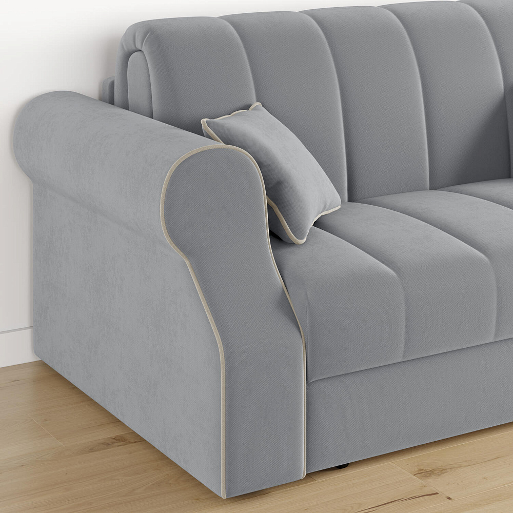 Механизм трансформации «Аккордеон». Чтобы разложить диван, необходимо приподнять сиденье и слегка потянуть на себя, далее диван разложится сам. В таком виде диван представляет собой единую конструкцию без петель и швов, которая обеспечит непревзойдённо комфортный сон. Для лёгкого разложения механизм усилен газовыми амортизаторами, а прорезиненные ролики защитят напольное покрытие от истирания.