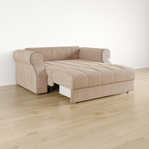 Механизм трансформации «Аккордеон». Чтобы разложить диван, необходимо приподнять сиденье и слегка потянуть на себя, далее диван разложится сам. В таком виде диван представляет собой единую конструкцию без петель и швов, которая обеспечит непревзойдённо комфортный сон. Для лёгкого разложения механизм усилен газовыми амортизаторами, а прорезиненные ролики защитят напольное покрытие от истирания.