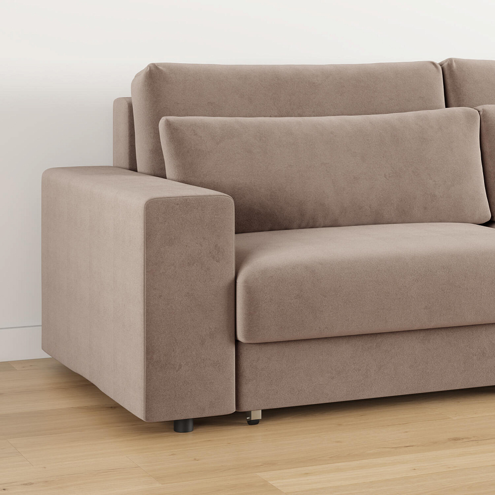 Обивка из велюра. Обивка дивана выполнена из нежнейшей велюровой ткани с матовой бархатистой фактурой.